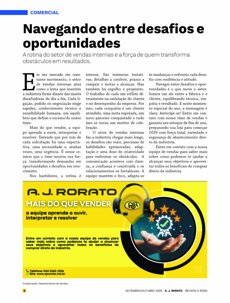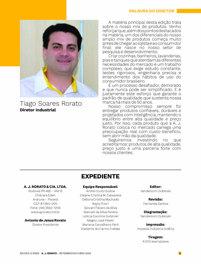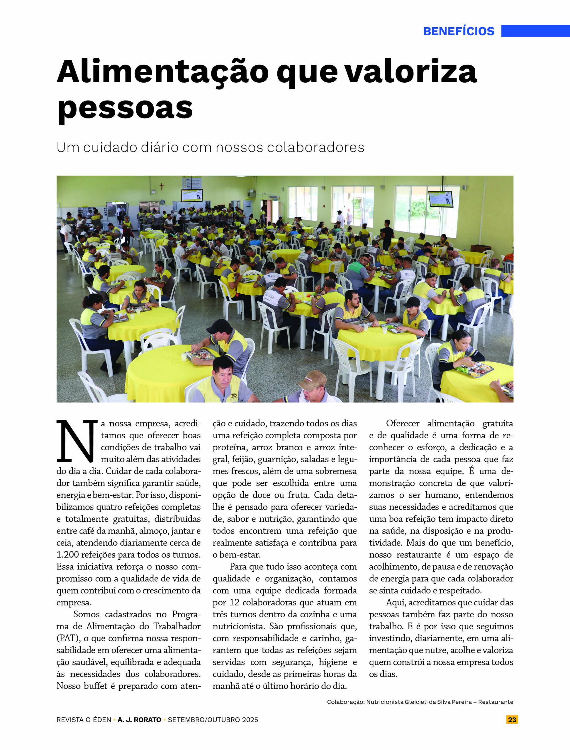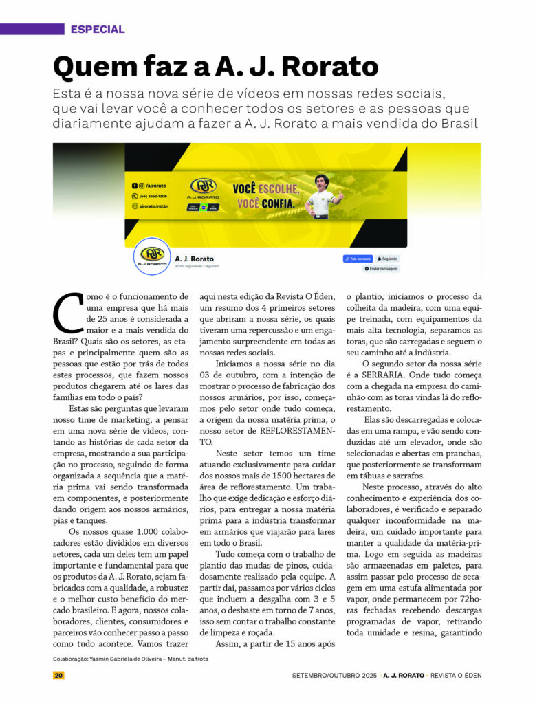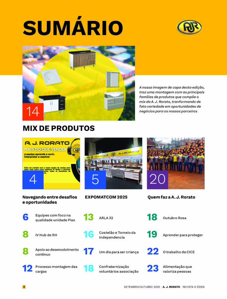Para saber mais sobre a A. J. Rorato, acesse as últimas edições de O Éden, o informativo que há mais de 30 anos conta as novidades da empresa aos nossos colaboradores, parceiros e clientes.