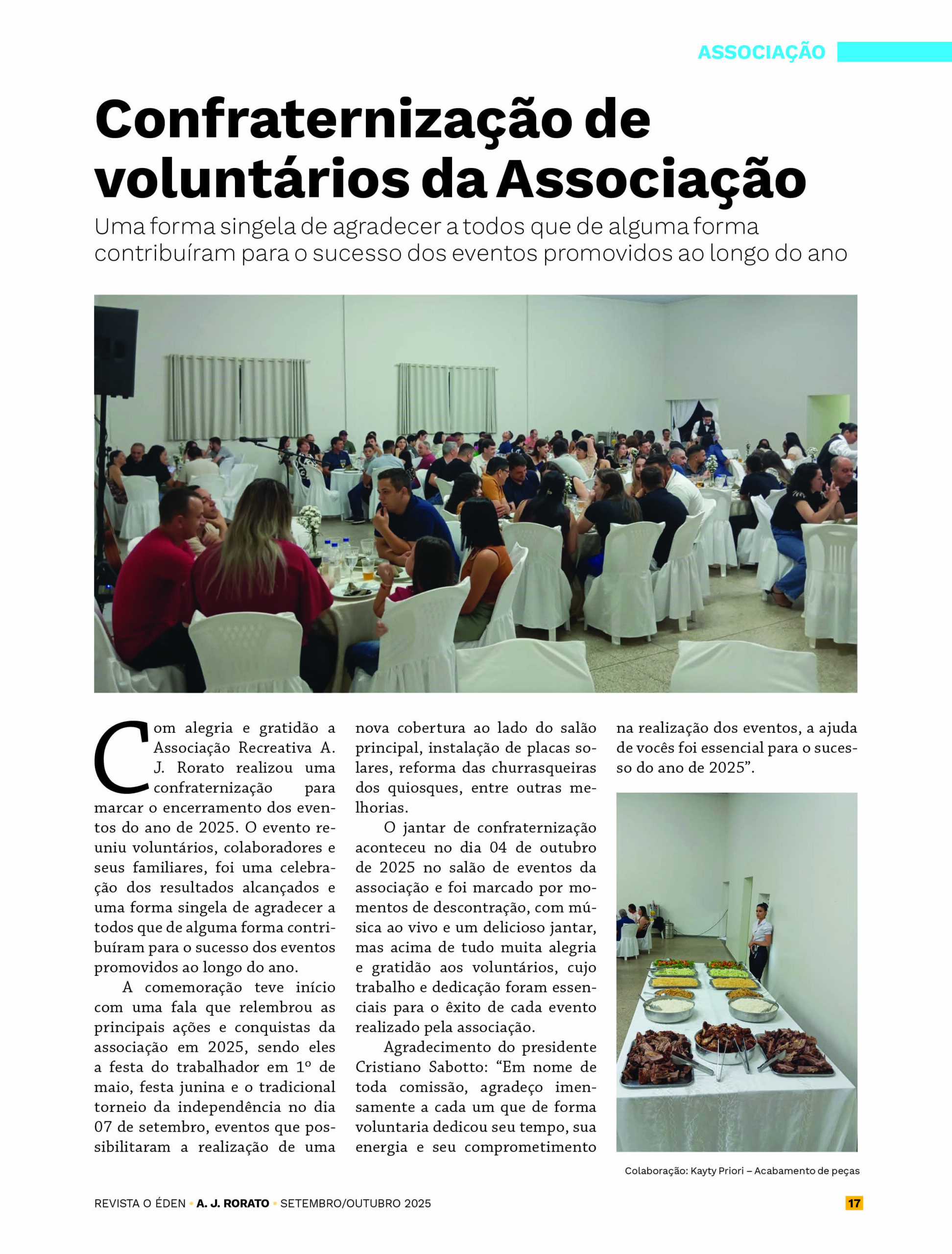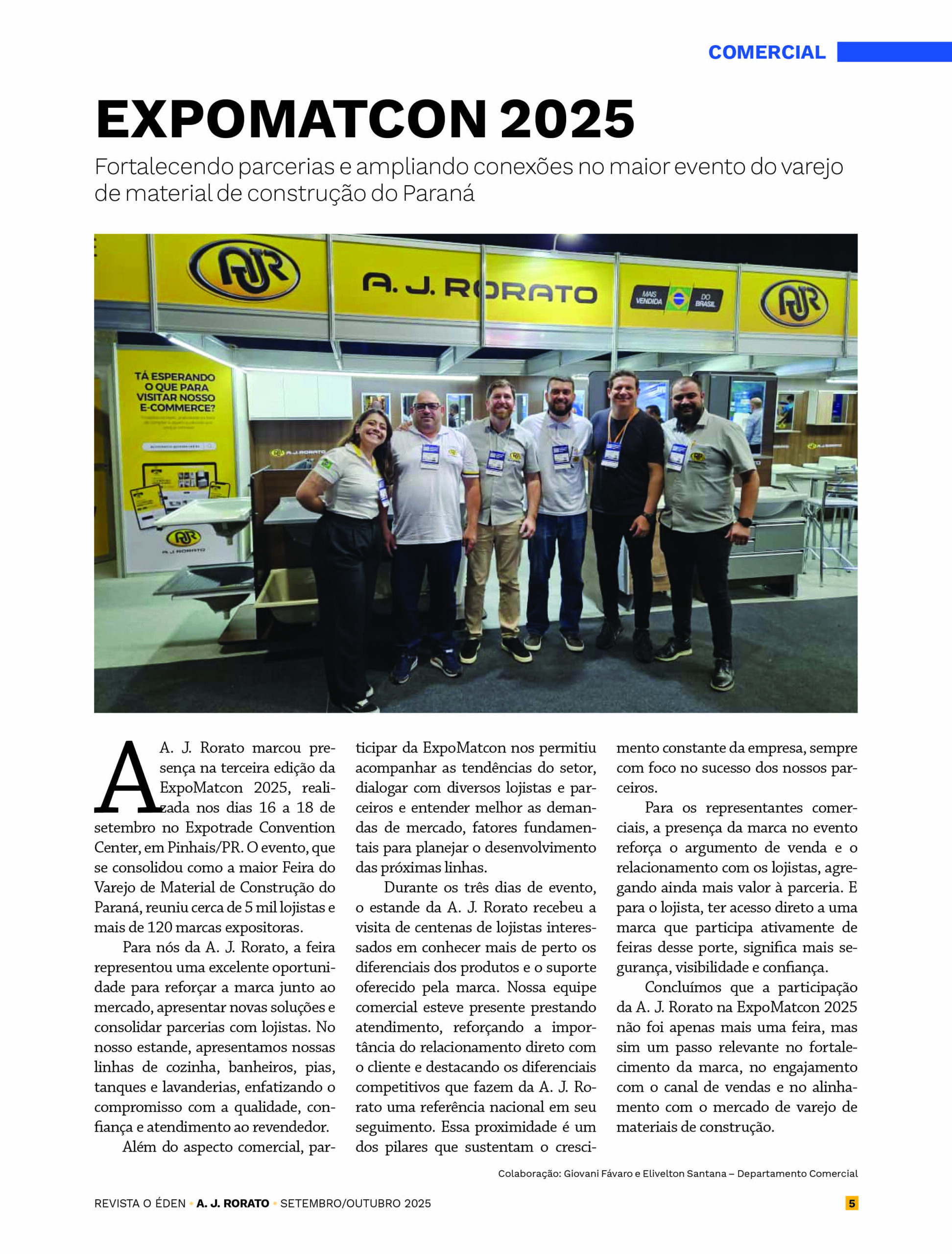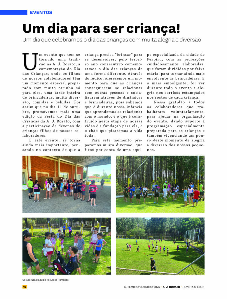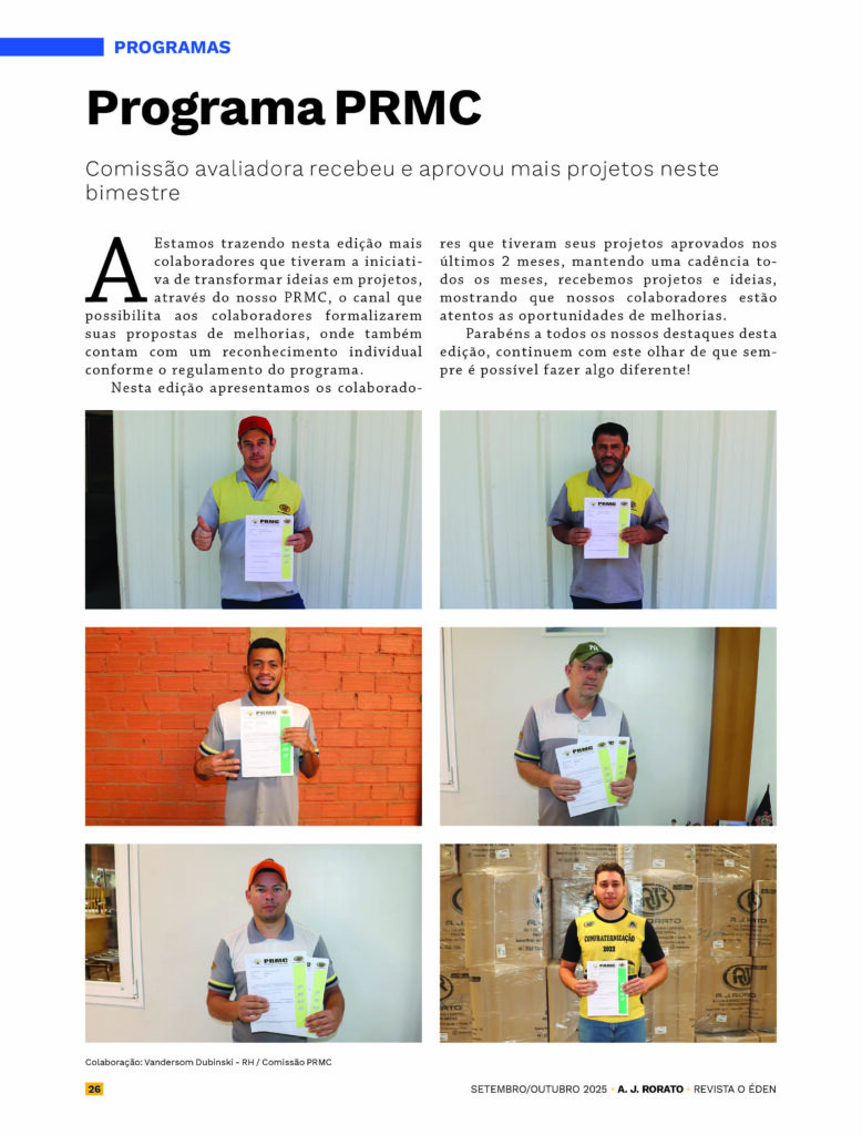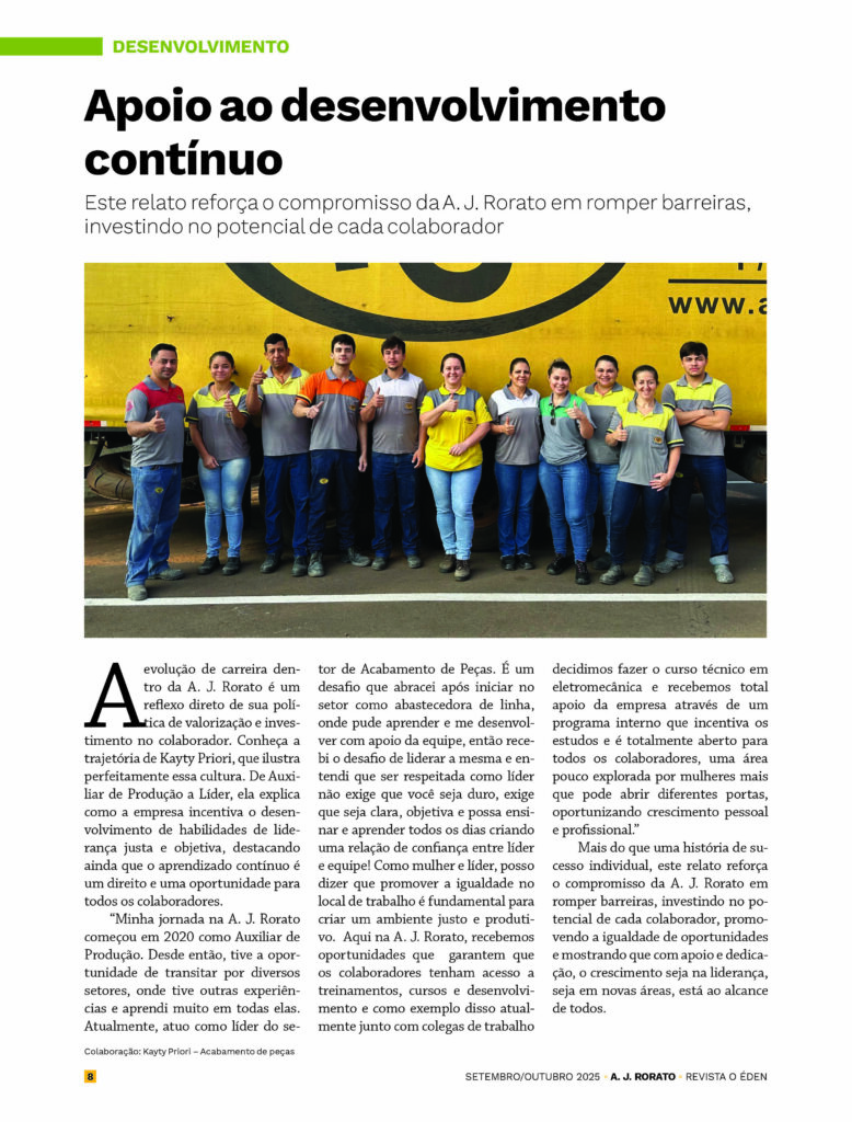 Para saber mais sobre a A. J. Rorato, acesse as últimas edições de O Éden, o informativo que há mais de 30 anos conta as novidades da empresa aos nossos colaboradores, parceiros e clientes.