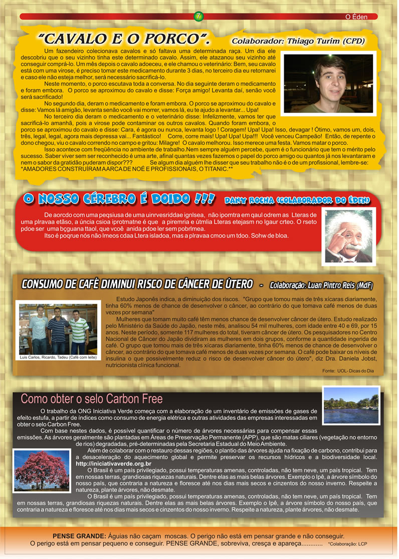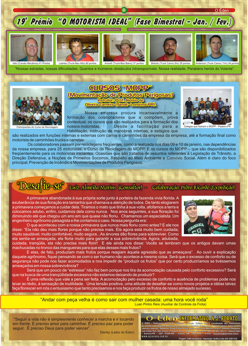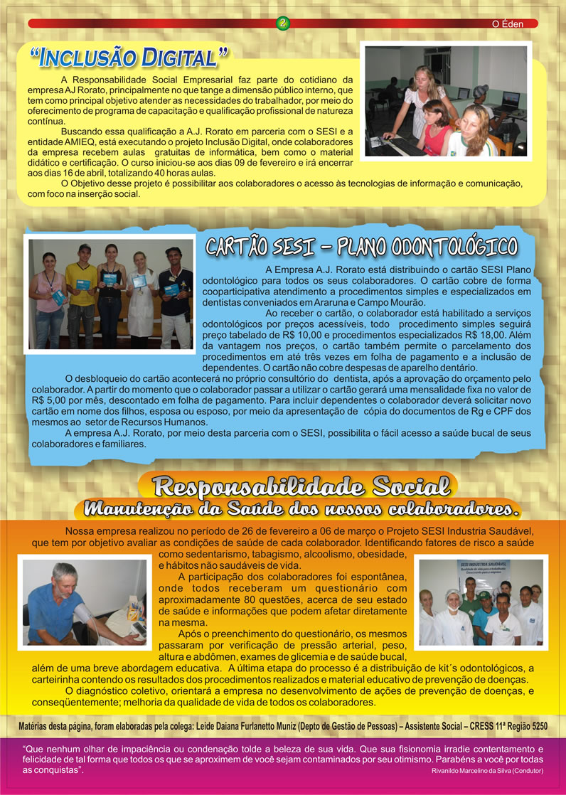 Para saber mais sobre a A. J. Rorato, acesse as últimas edições de O Éden, o informativo que há mais de 30 anos conta as novidades da empresa aos nossos colaboradores, parceiros e clientes.