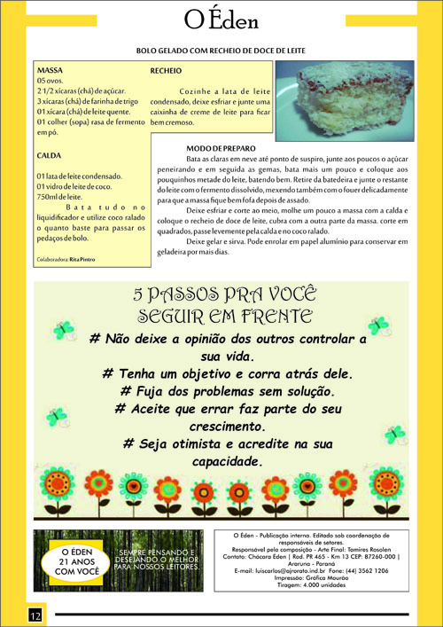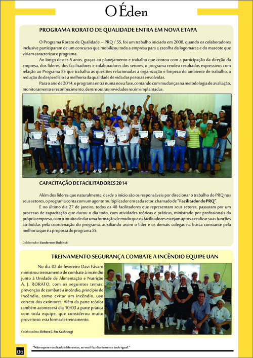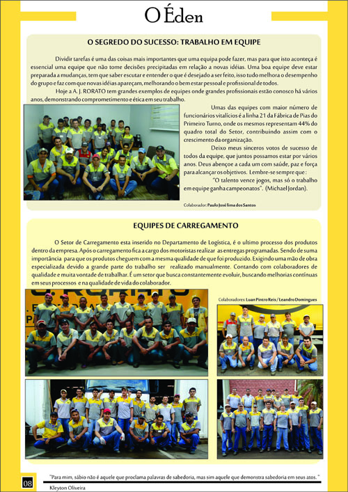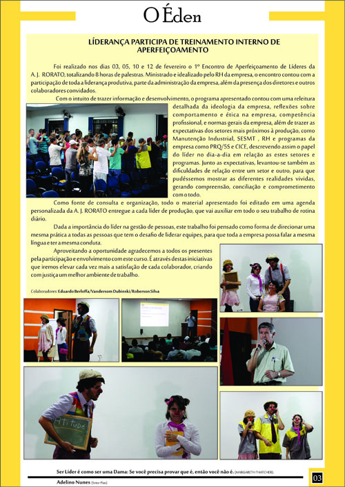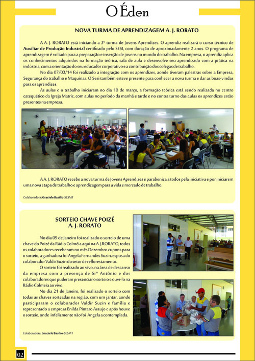 Para saber mais sobre a A. J. Rorato, acesse as últimas edições de O Éden, o informativo que há mais de 30 anos conta as novidades da empresa aos nossos colaboradores, parceiros e clientes.