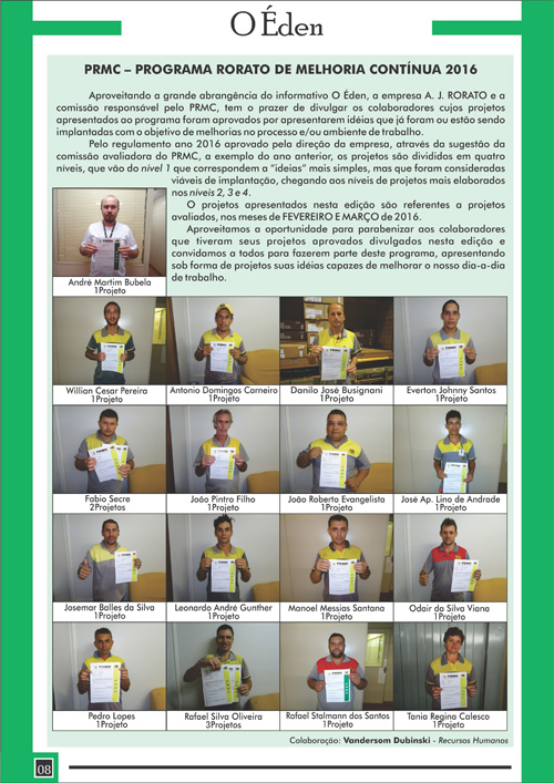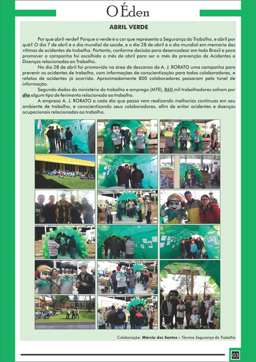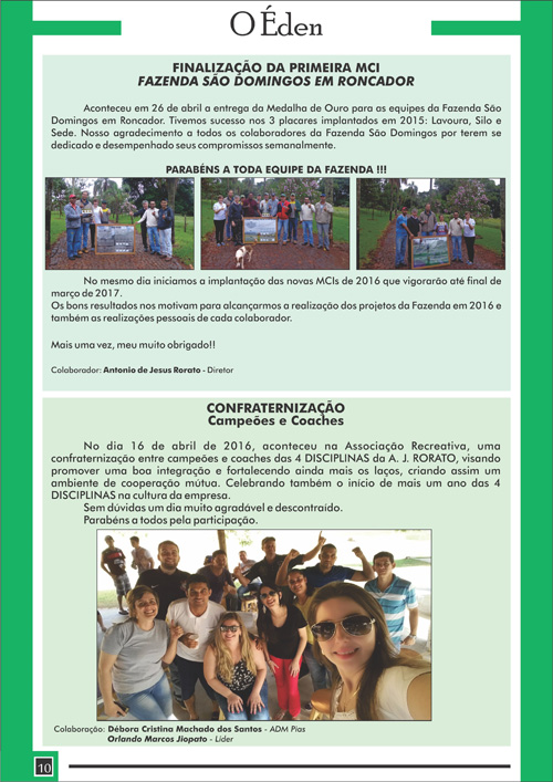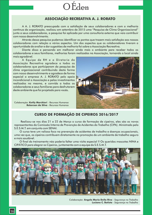 Para saber mais sobre a A. J. Rorato, acesse as últimas edições de O Éden, o informativo que há mais de 30 anos conta as novidades da empresa aos nossos colaboradores, parceiros e clientes.