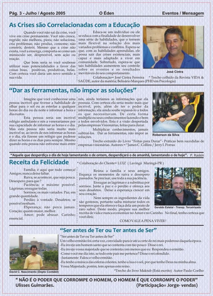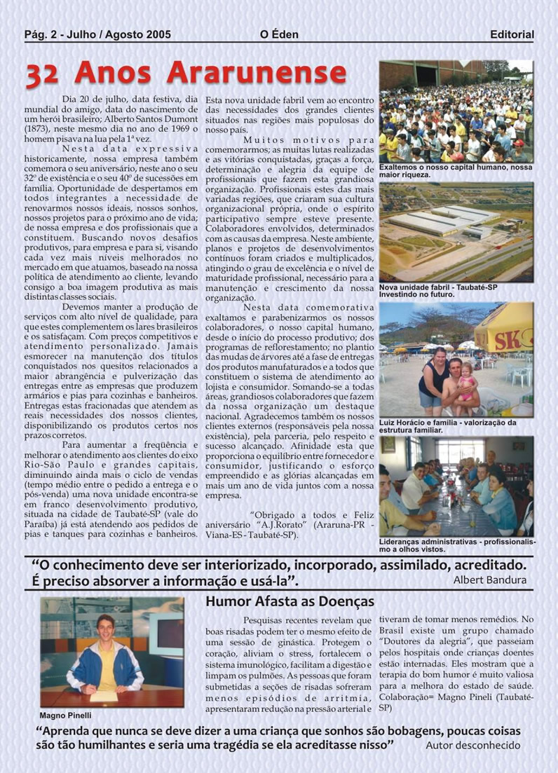 Para saber mais sobre a A. J. Rorato, acesse as últimas edições de O Éden, o informativo que há mais de 30 anos conta as novidades da empresa aos nossos colaboradores, parceiros e clientes.