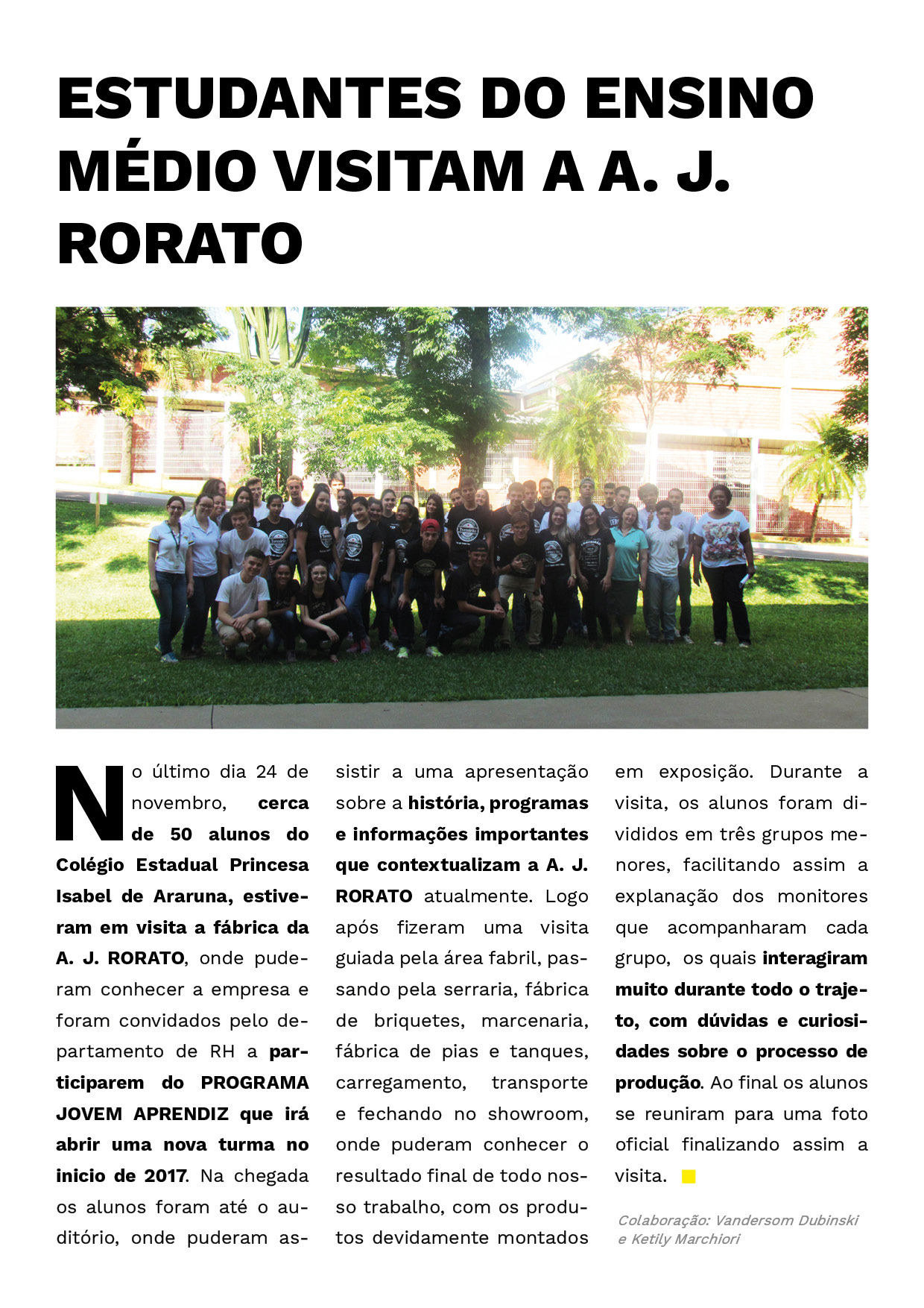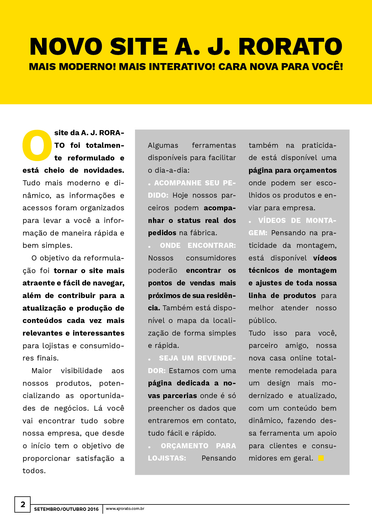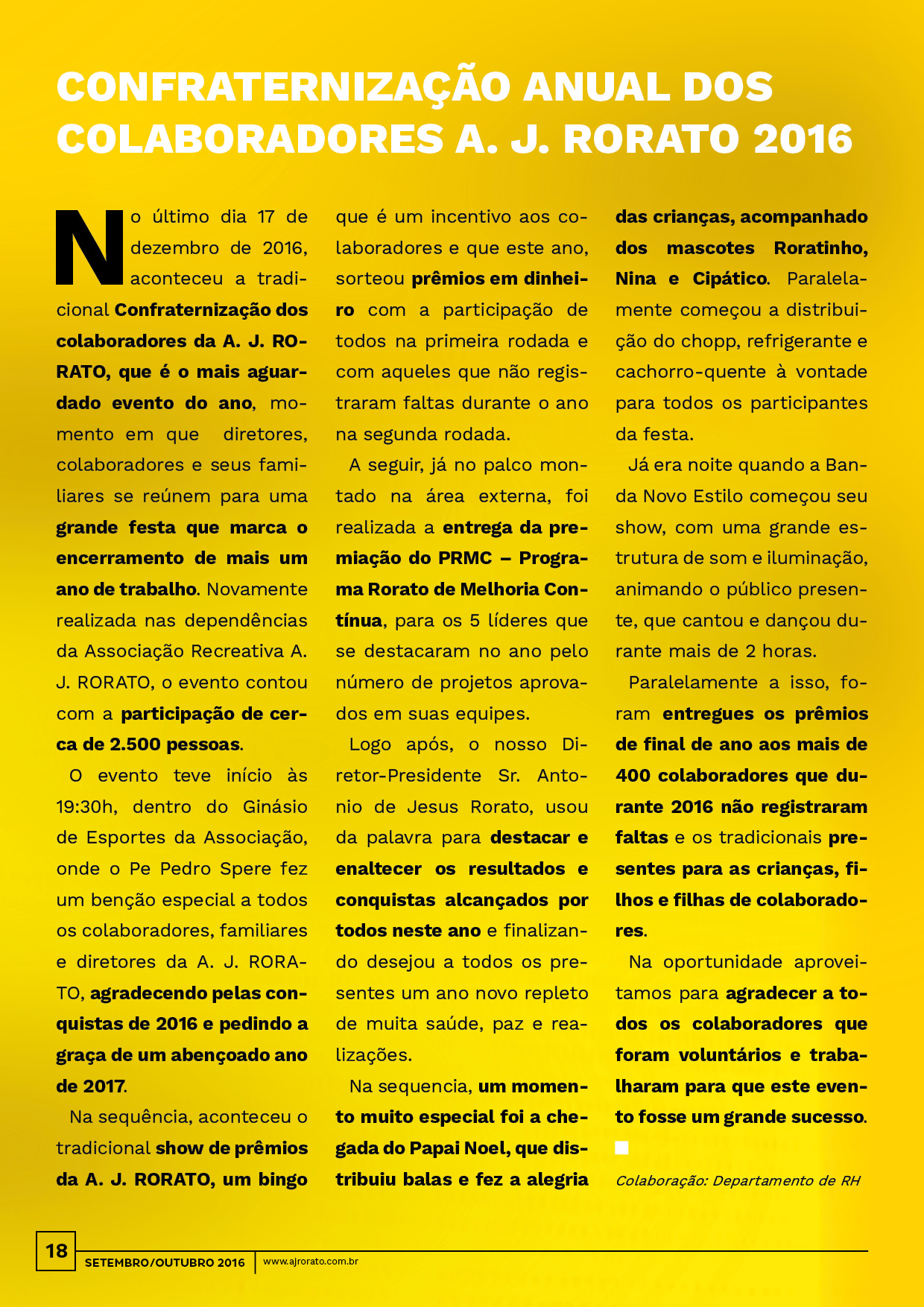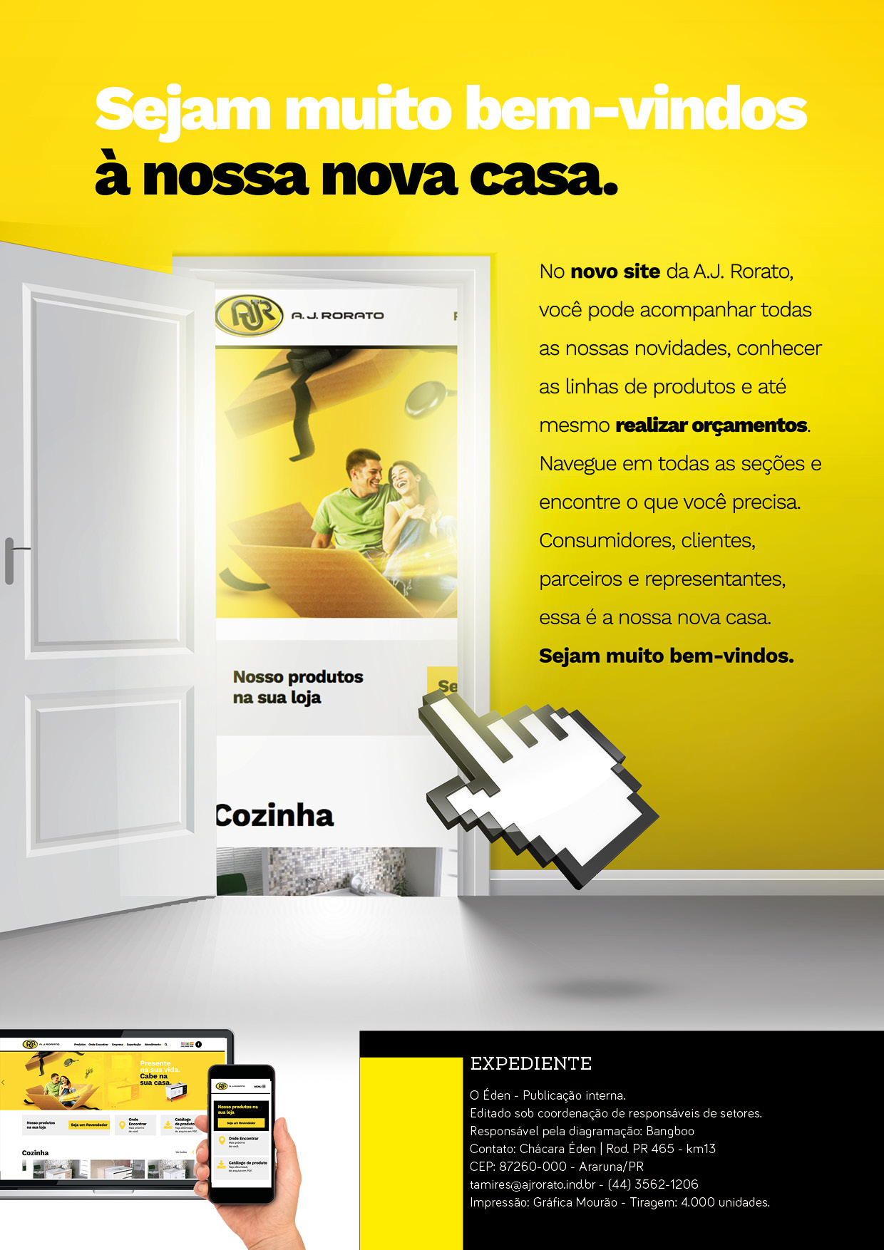 Para saber mais sobre a A. J. Rorato, acesse as últimas edições de O Éden, o informativo que há mais de 30 anos conta as novidades da empresa aos nossos colaboradores, parceiros e clientes.