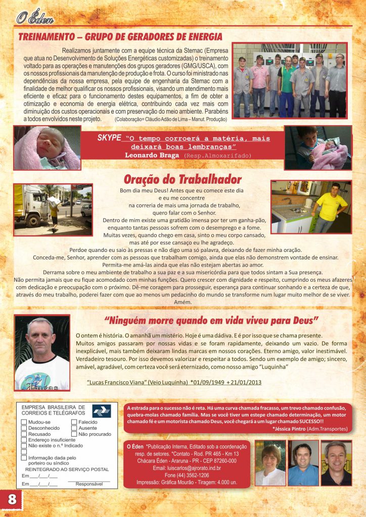 Para saber mais sobre a A. J. Rorato, acesse as últimas edições de O Éden, o informativo que há mais de 30 anos conta as novidades da empresa aos nossos colaboradores, parceiros e clientes.