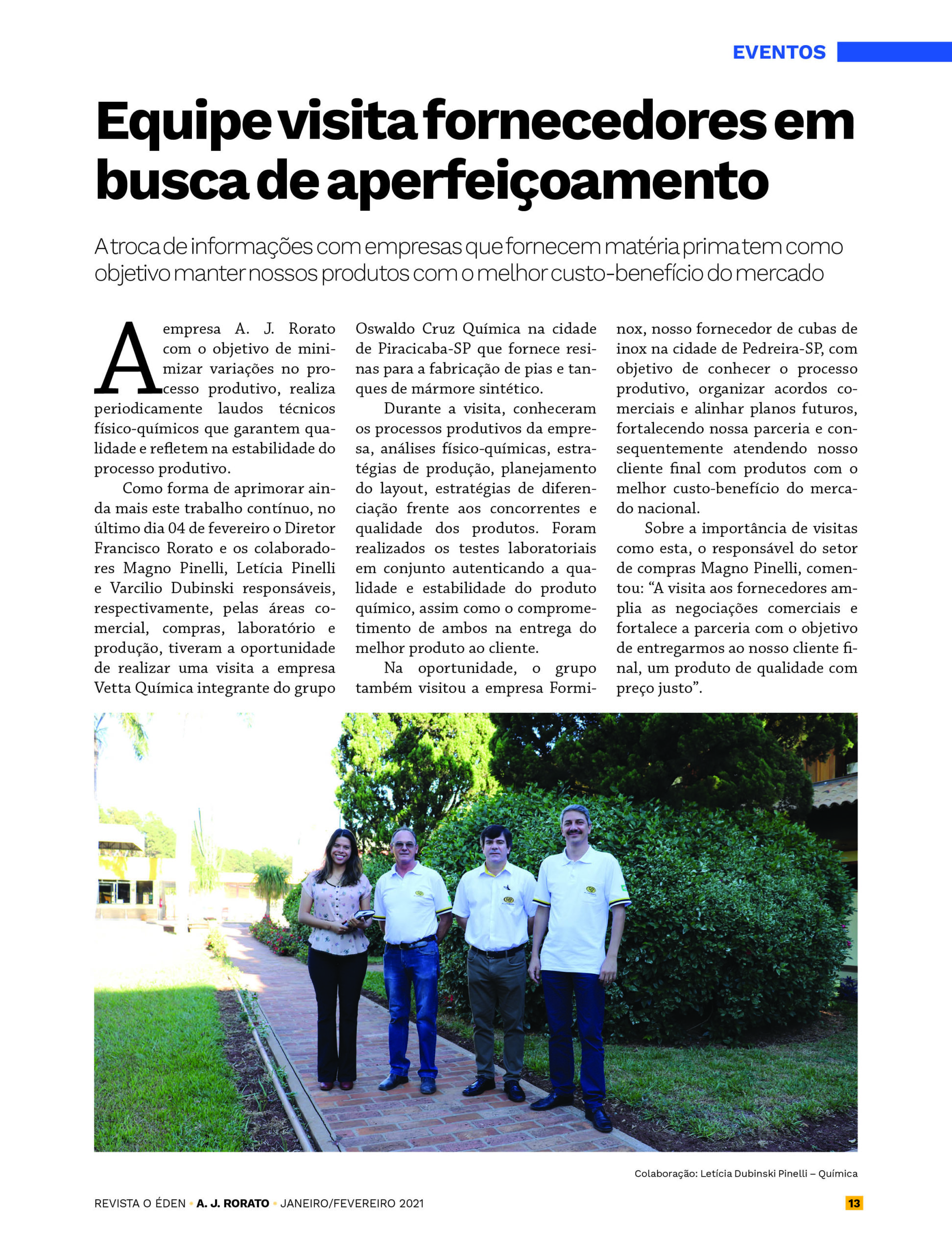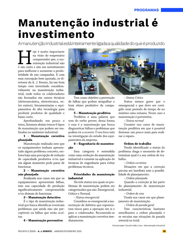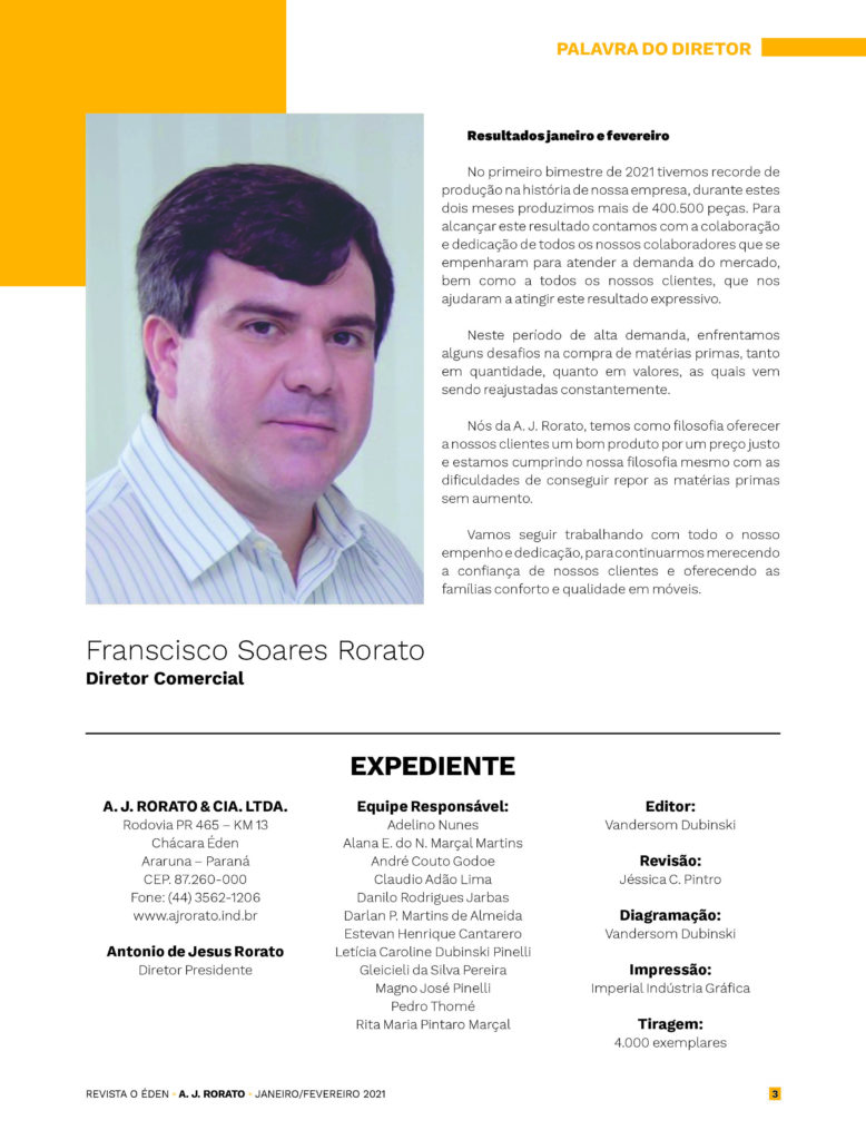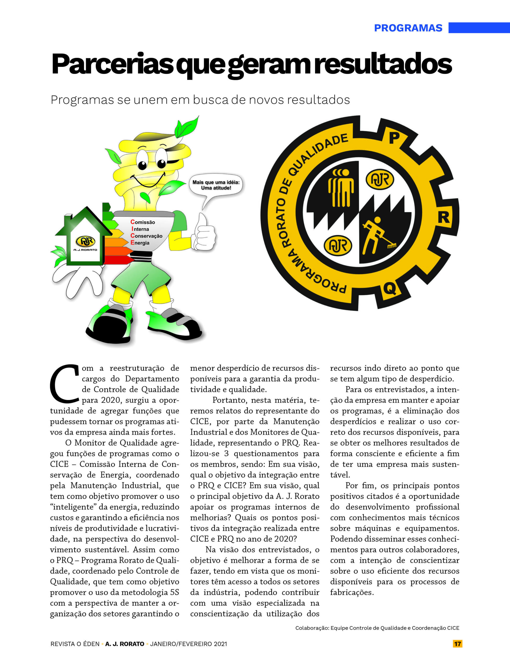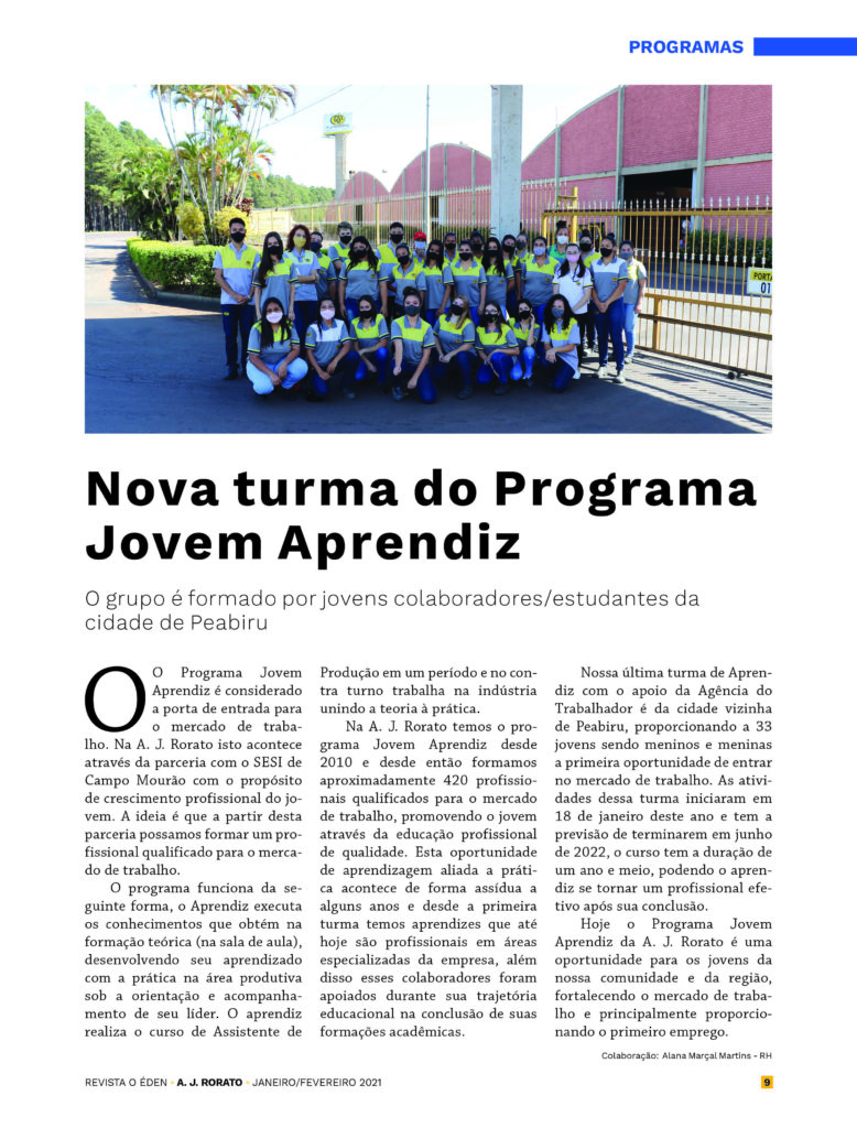 Para saber mais sobre a A. J. Rorato, acesse as últimas edições de O Éden, o informativo que há mais de 30 anos conta as novidades da empresa aos nossos colaboradores, parceiros e clientes.