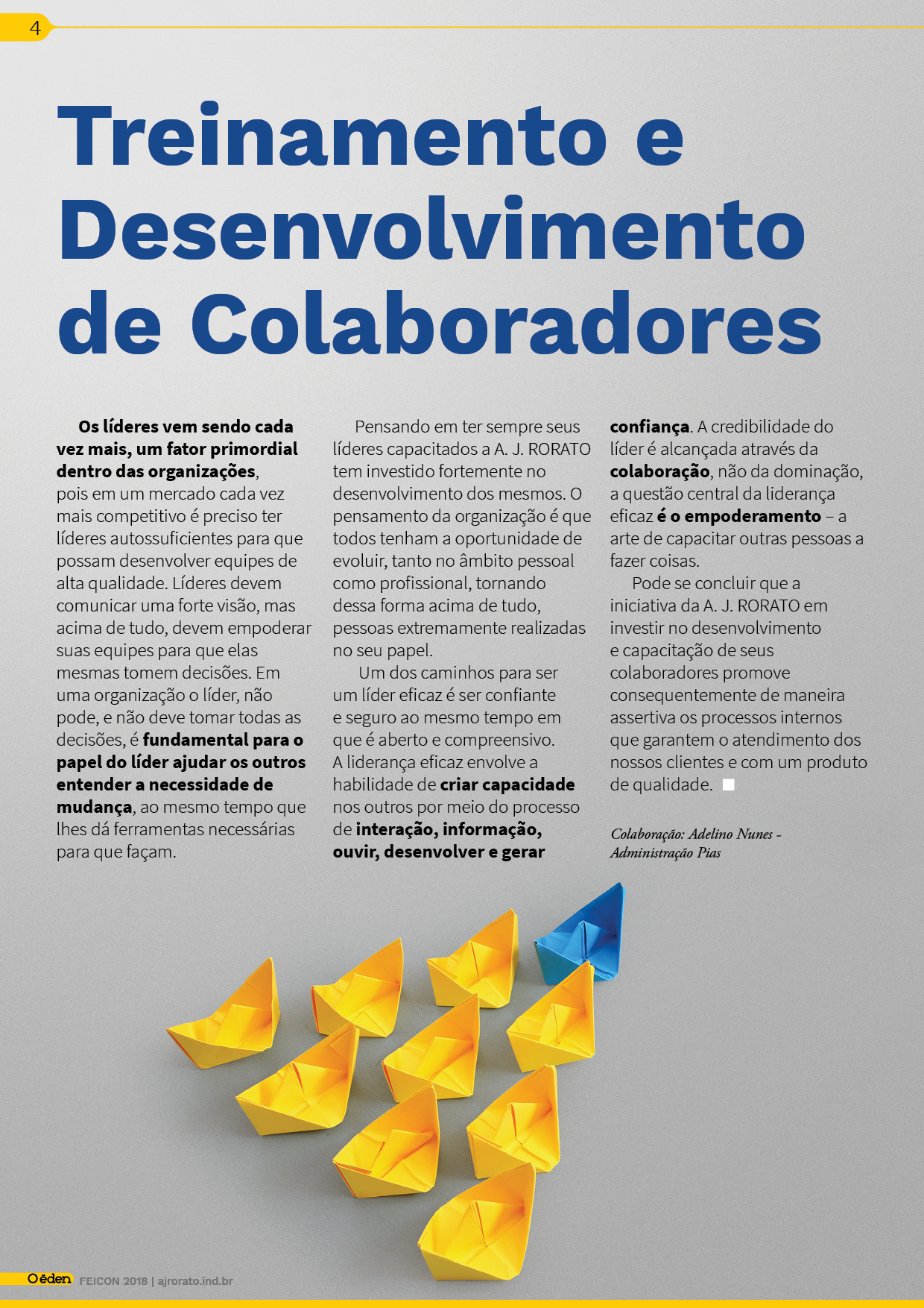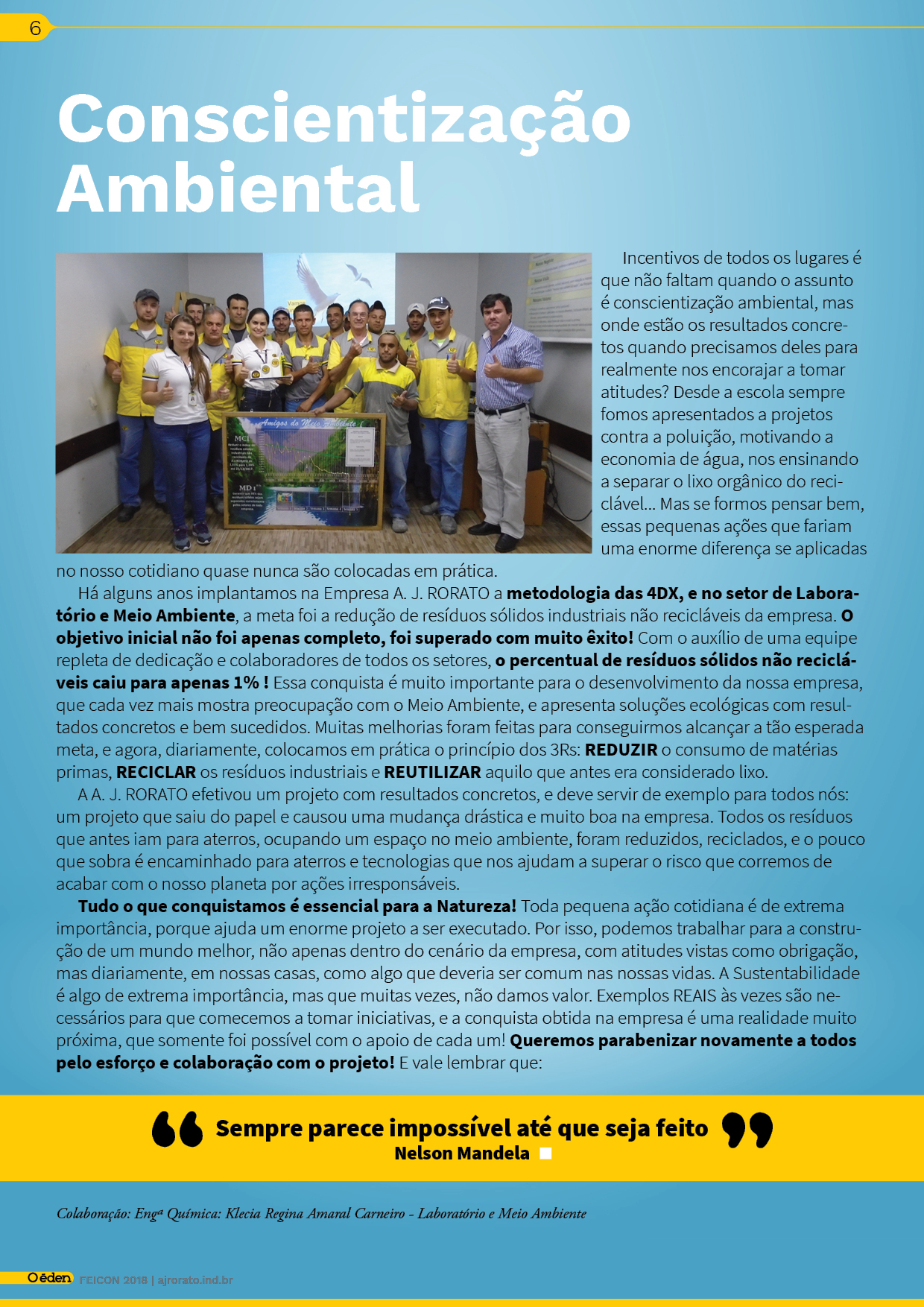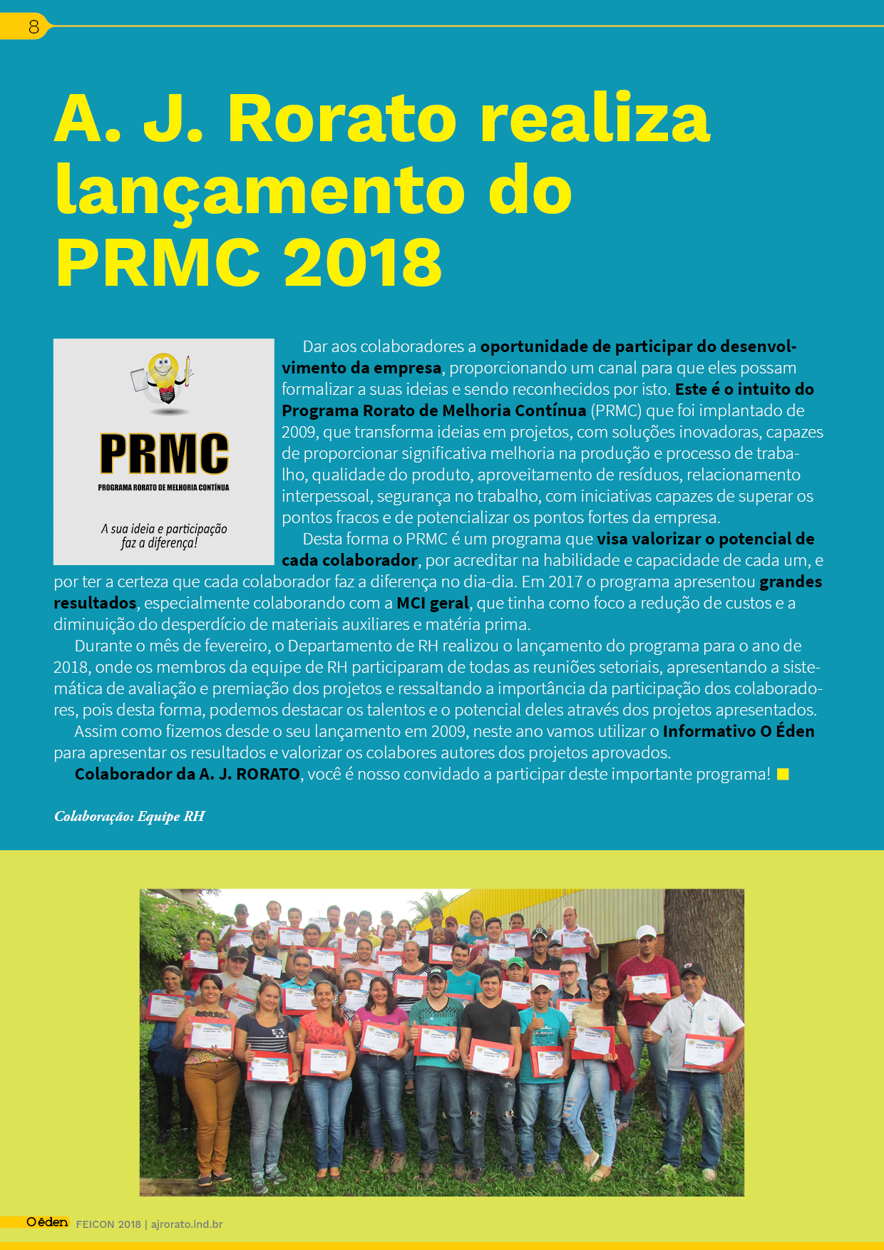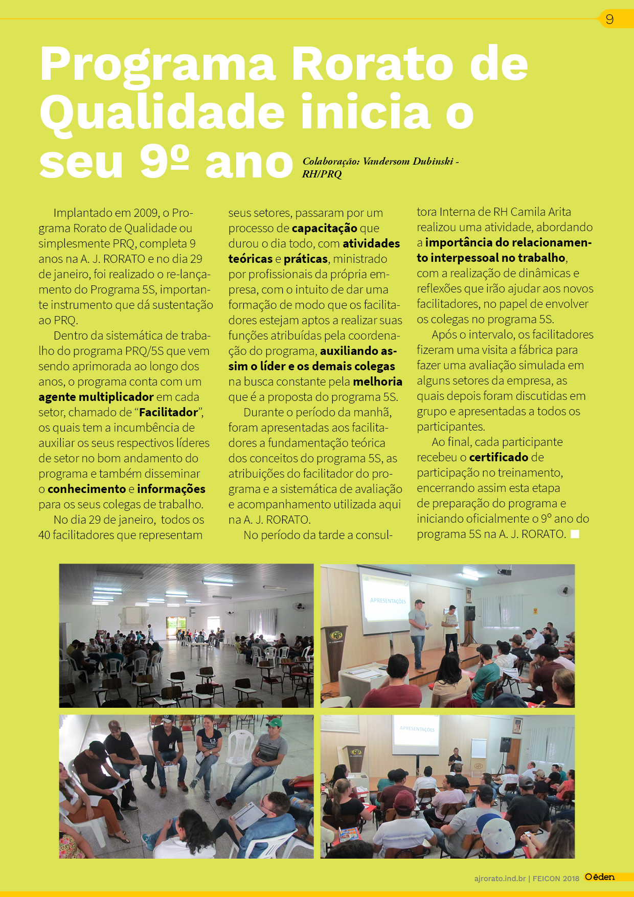 Para saber mais sobre a A. J. Rorato, acesse as últimas edições de O Éden, o informativo que há mais de 30 anos conta as novidades da empresa aos nossos colaboradores, parceiros e clientes.