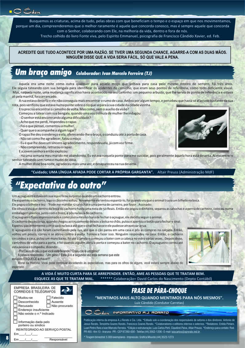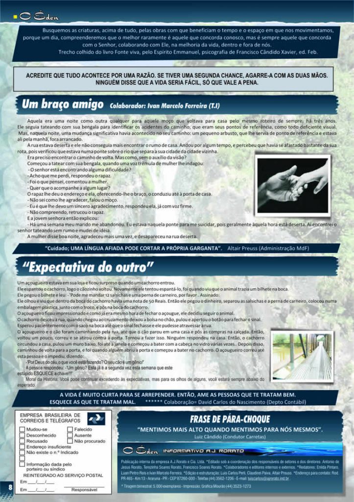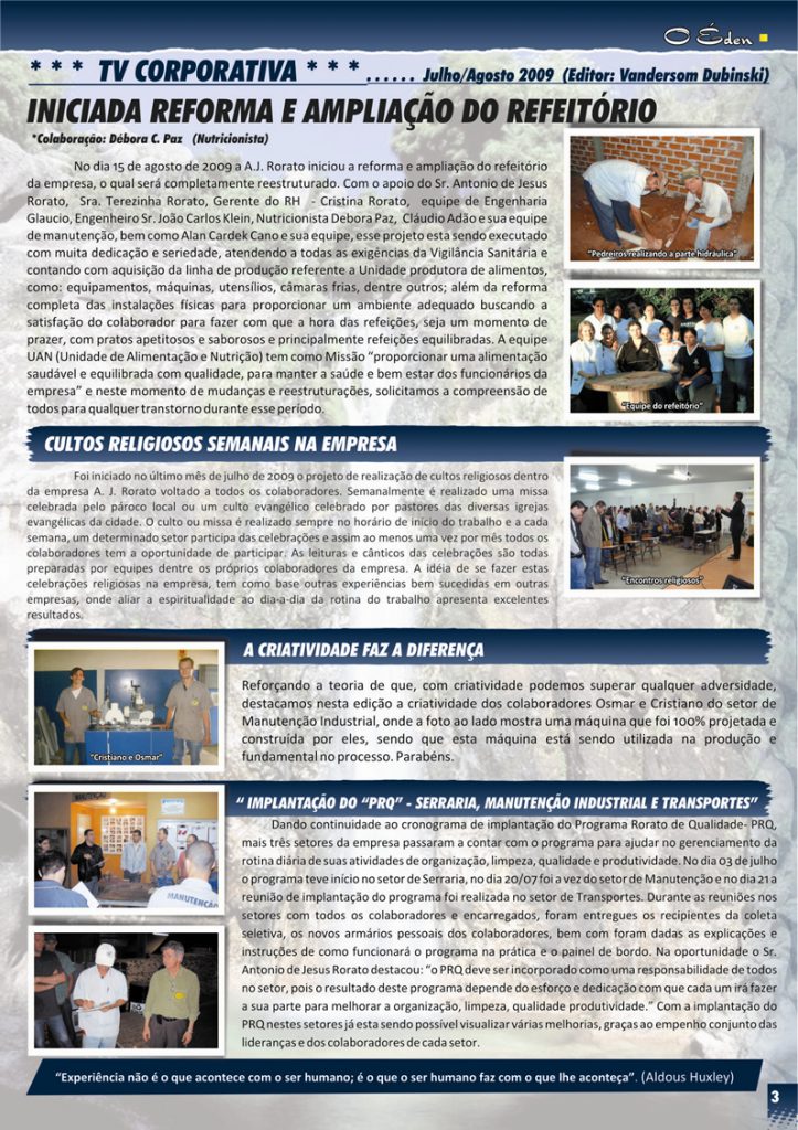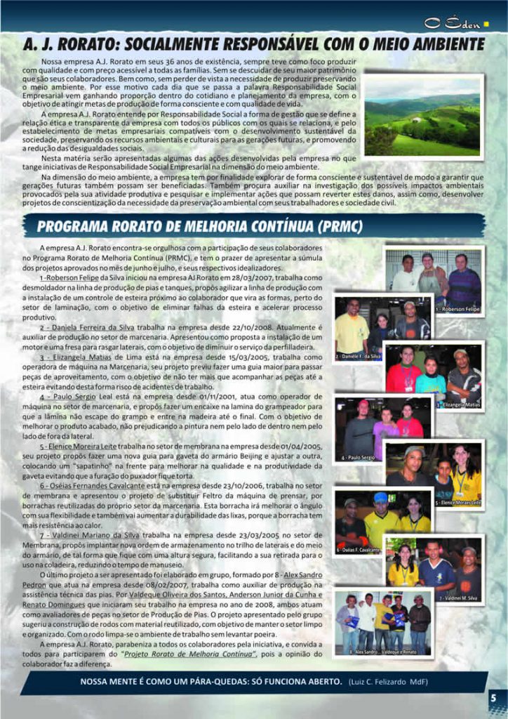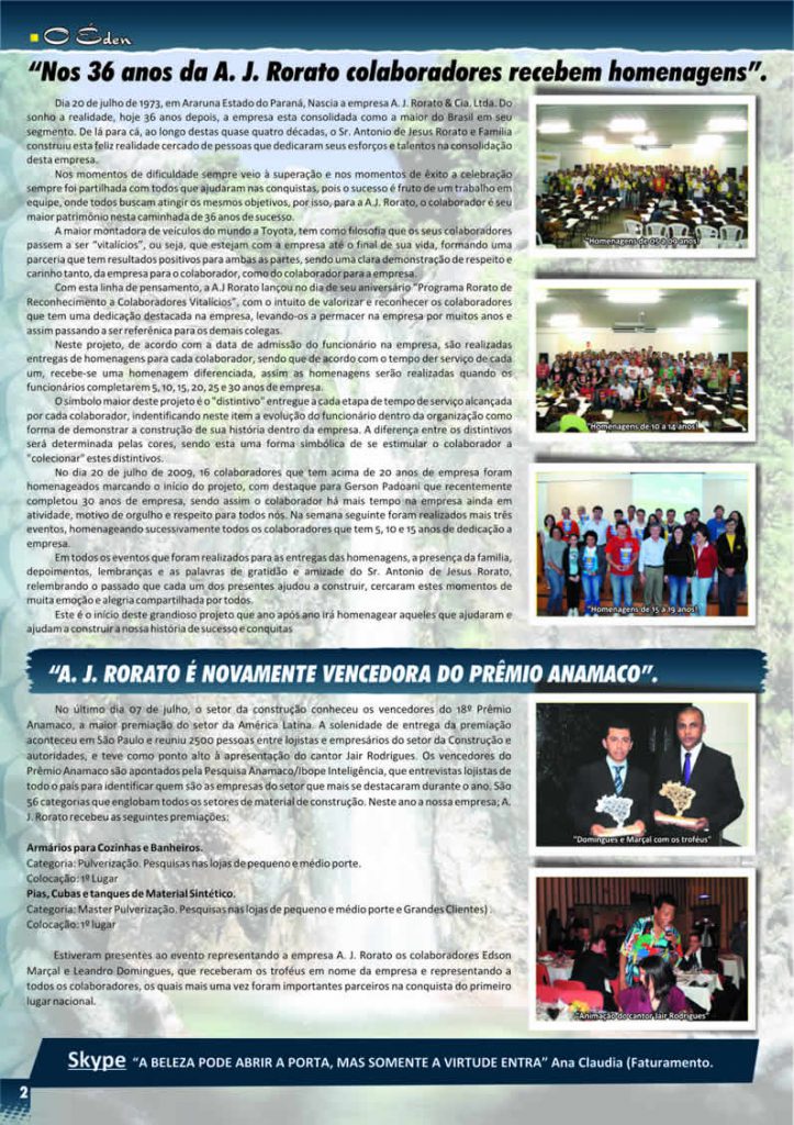 Para saber mais sobre a A. J. Rorato, acesse as últimas edições de O Éden, o informativo que há mais de 30 anos conta as novidades da empresa aos nossos colaboradores, parceiros e clientes.