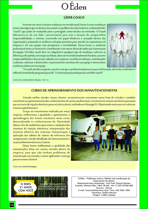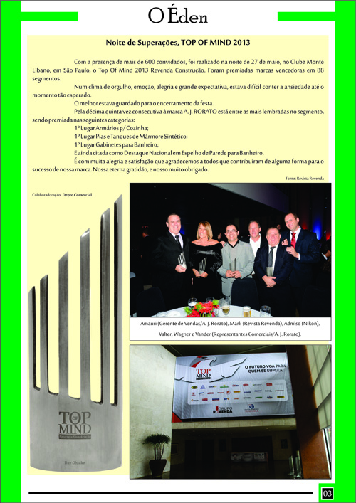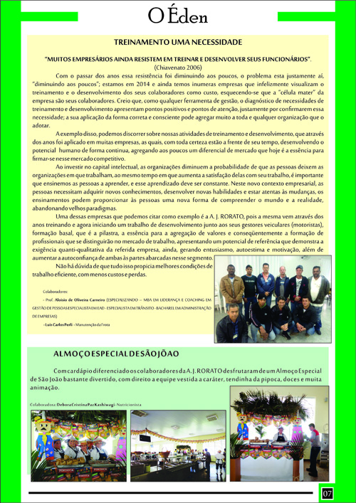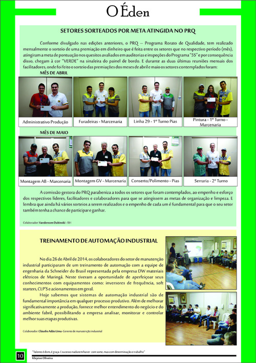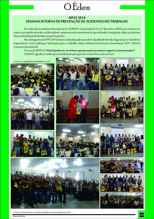 Para saber mais sobre a A. J. Rorato, acesse as últimas edições de O Éden, o informativo que há mais de 30 anos conta as novidades da empresa aos nossos colaboradores, parceiros e clientes.