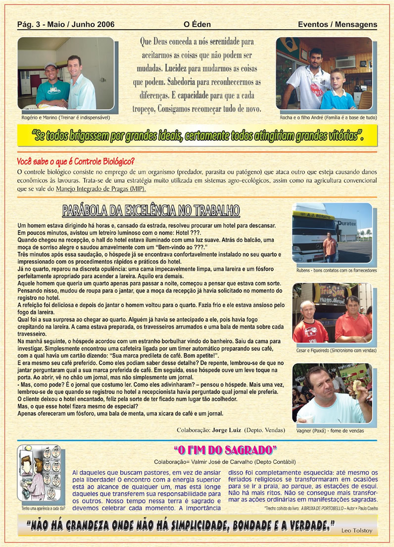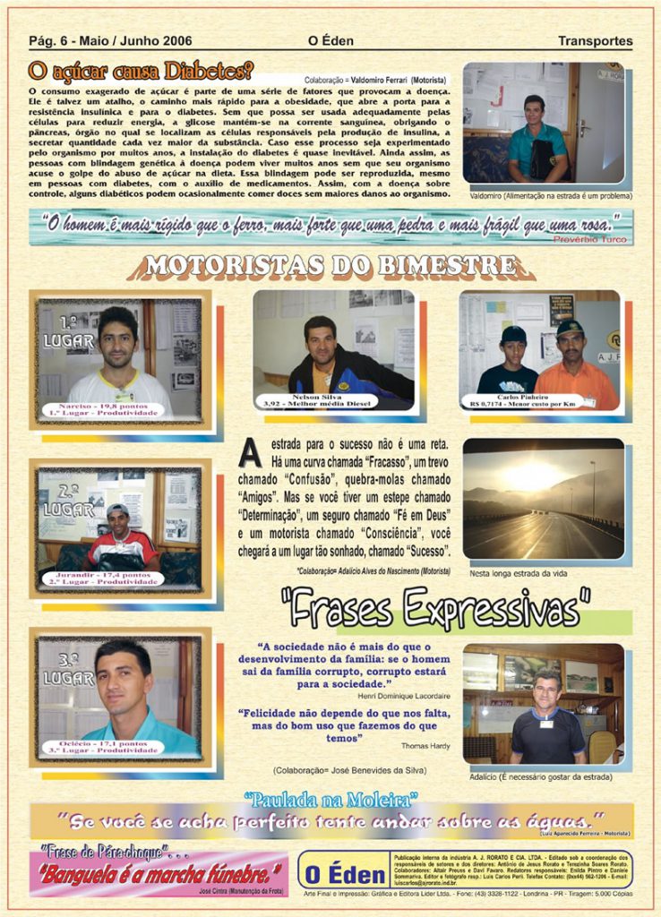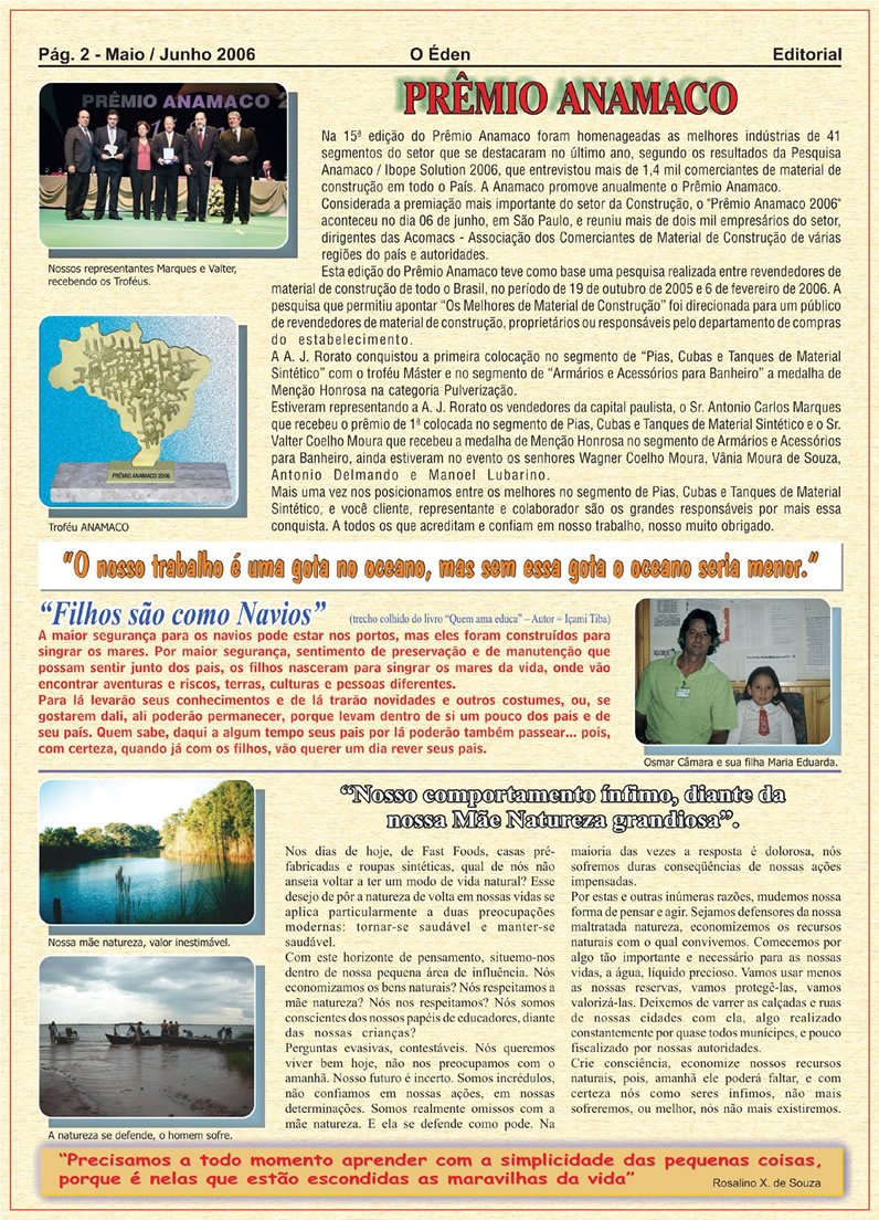 Para saber mais sobre a A. J. Rorato, acesse as últimas edições de O Éden, o informativo que há mais de 30 anos conta as novidades da empresa aos nossos colaboradores, parceiros e clientes.
