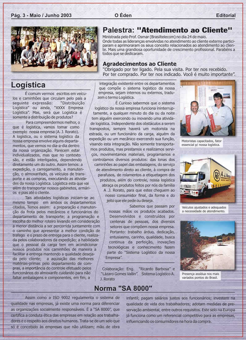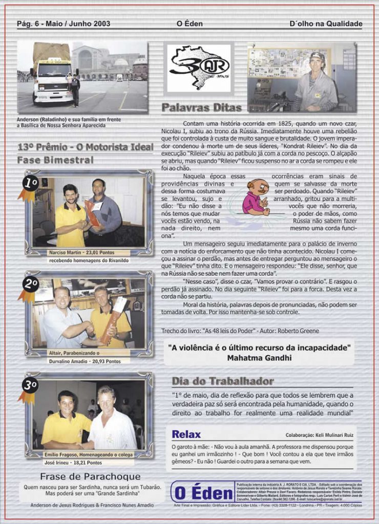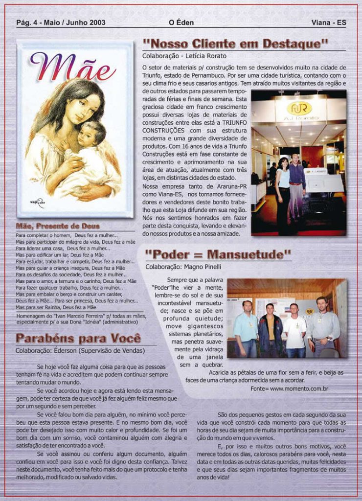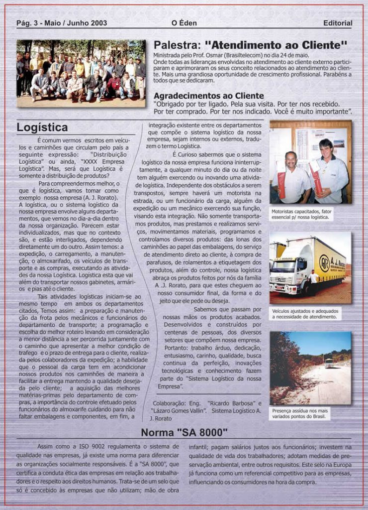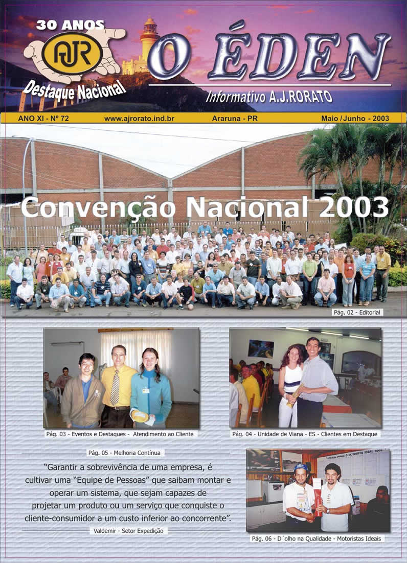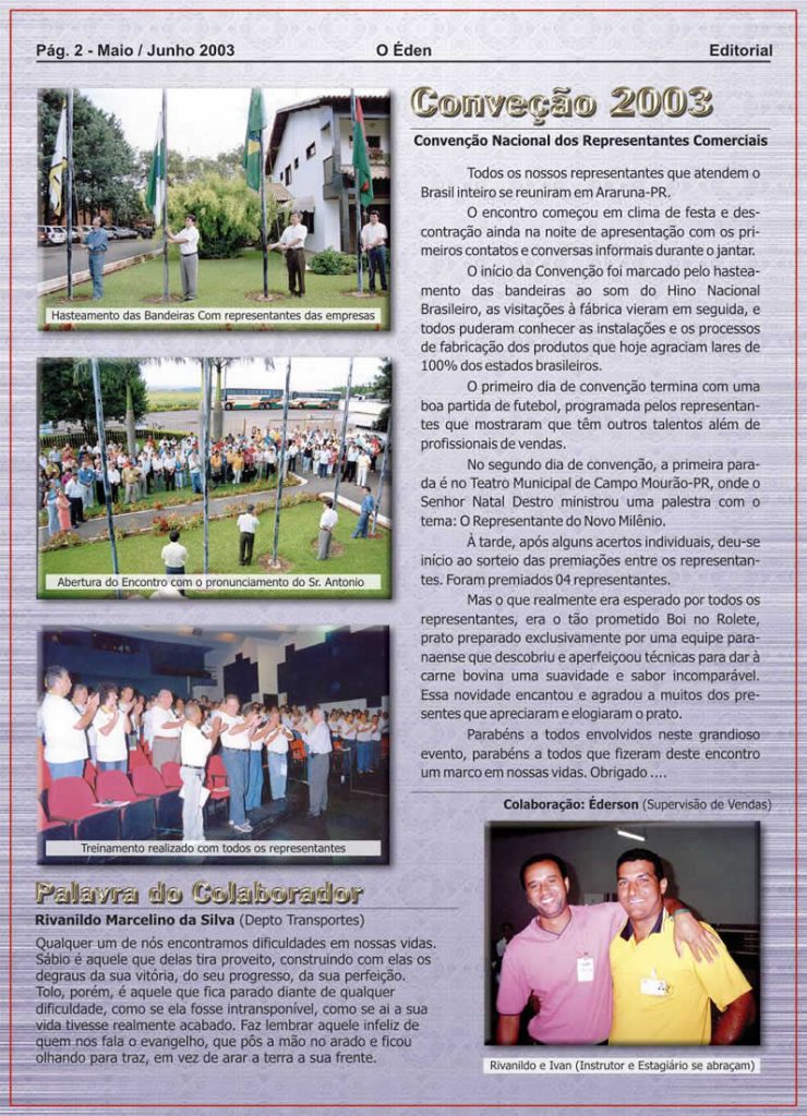 Para saber mais sobre a A. J. Rorato, acesse as últimas edições de O Éden, o informativo que há mais de 30 anos conta as novidades da empresa aos nossos colaboradores, parceiros e clientes.