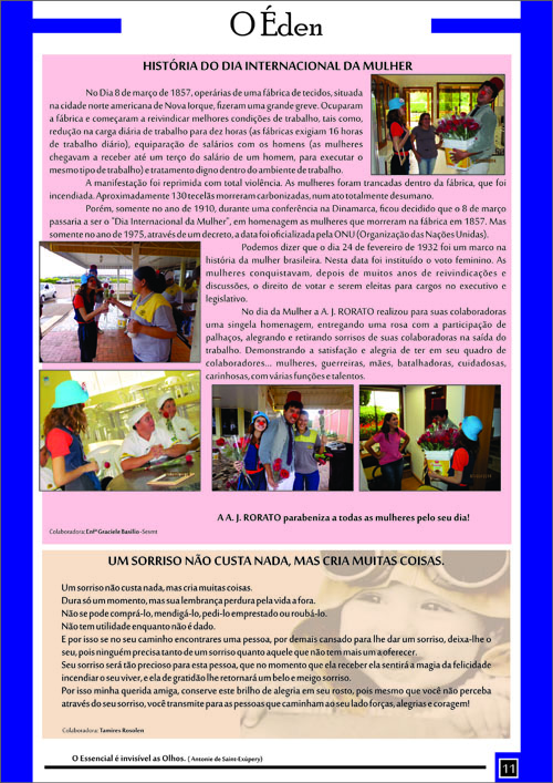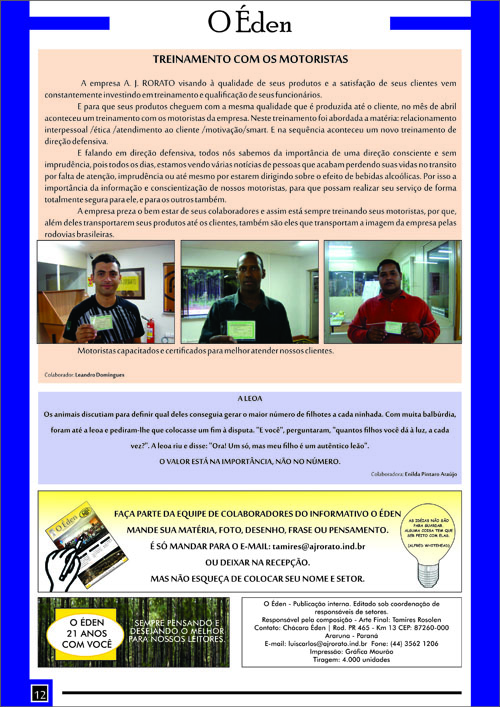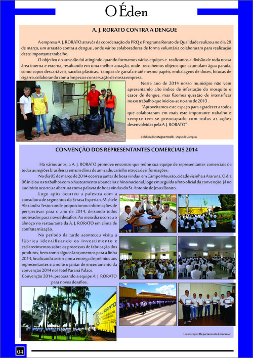 Para saber mais sobre a A. J. Rorato, acesse as últimas edições de O Éden, o informativo que há mais de 30 anos conta as novidades da empresa aos nossos colaboradores, parceiros e clientes.