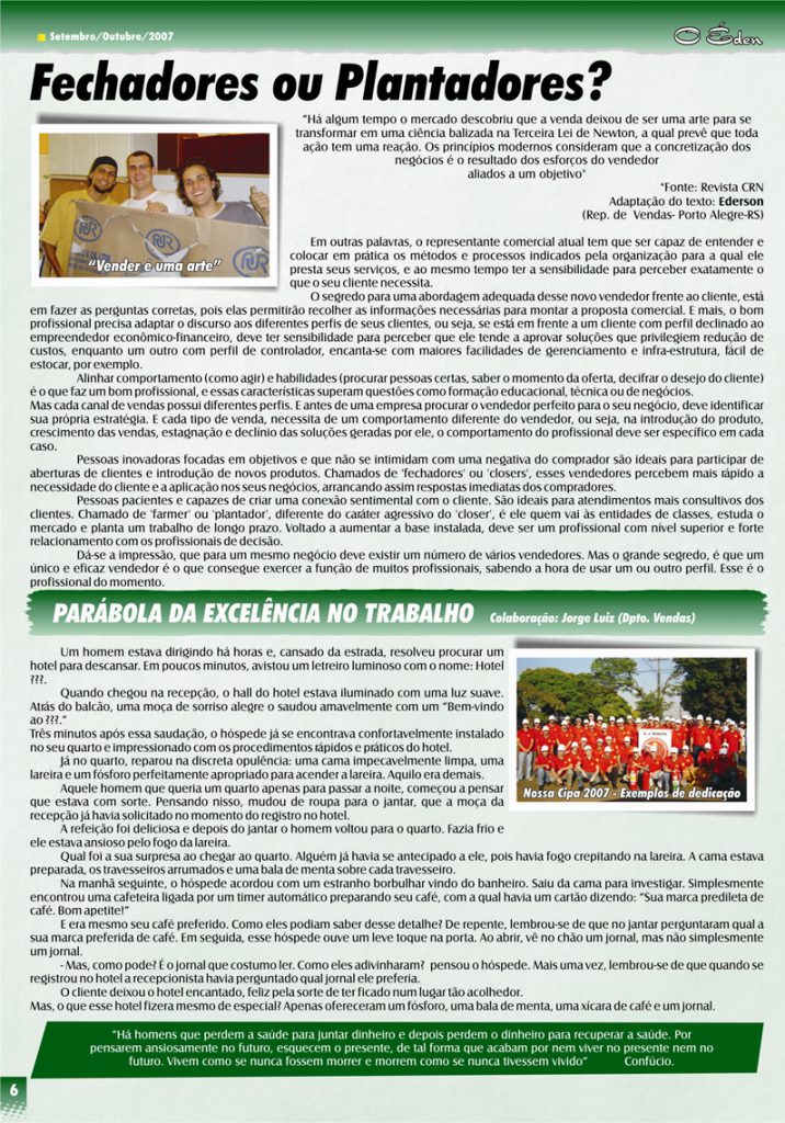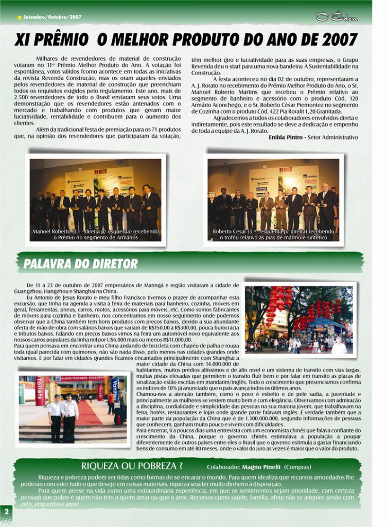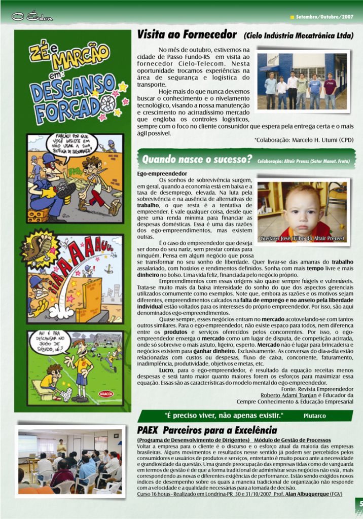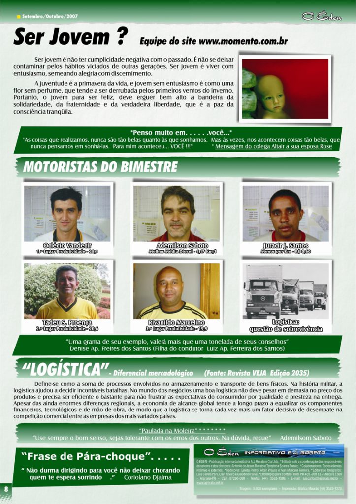 Para saber mais sobre a A. J. Rorato, acesse as últimas edições de O Éden, o informativo que há mais de 30 anos conta as novidades da empresa aos nossos colaboradores, parceiros e clientes.