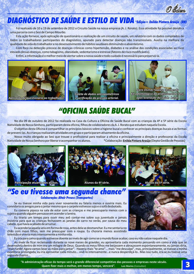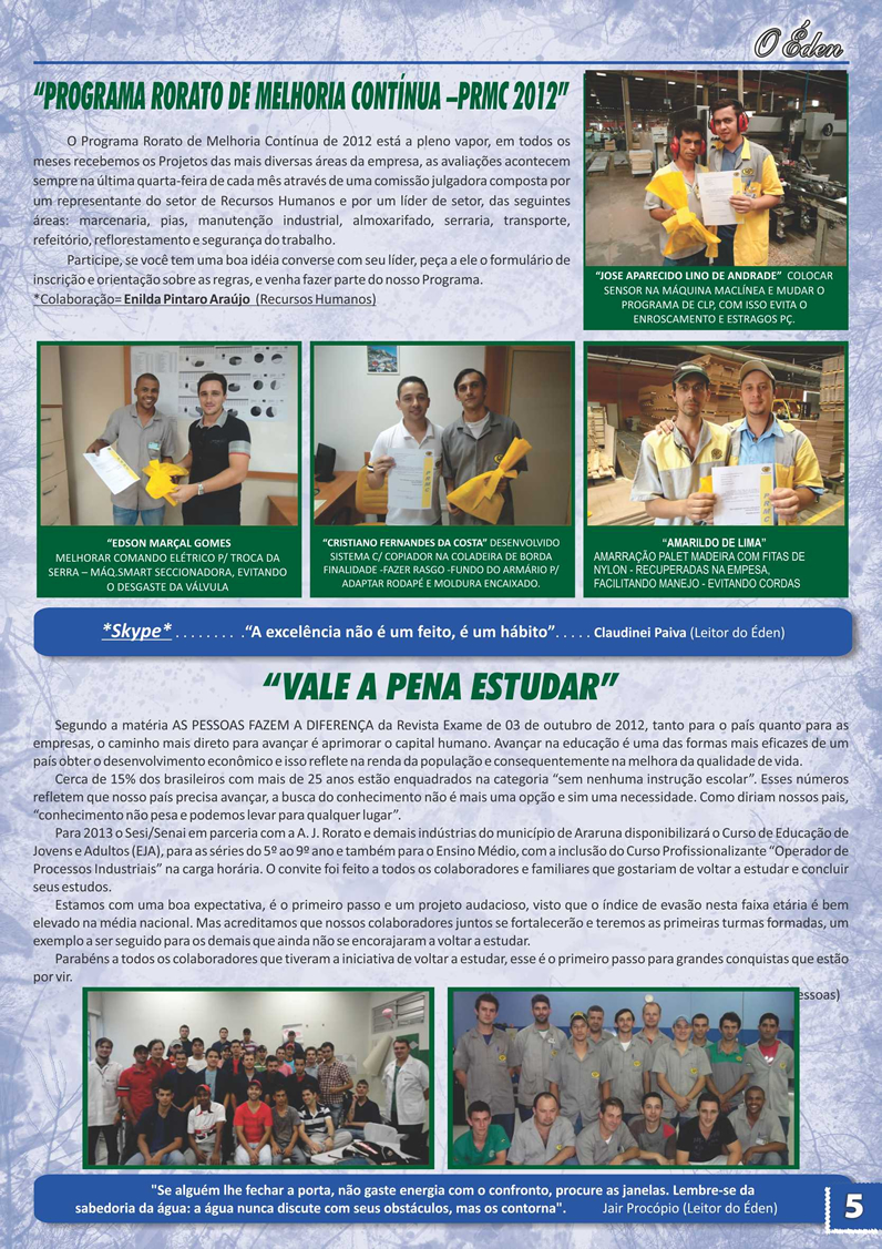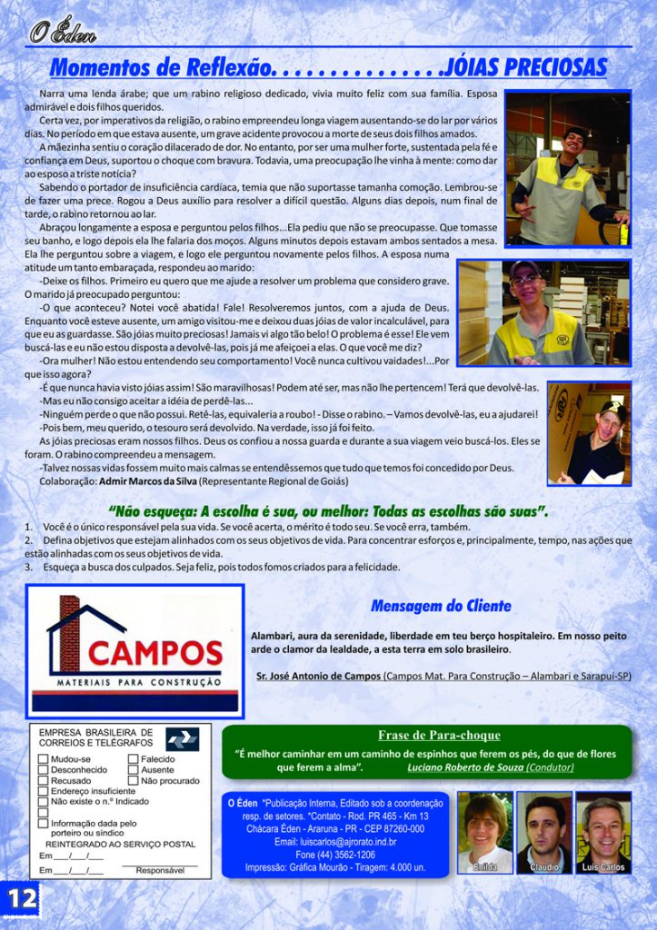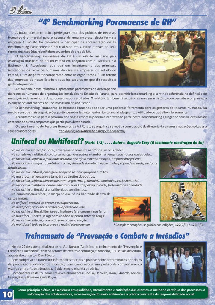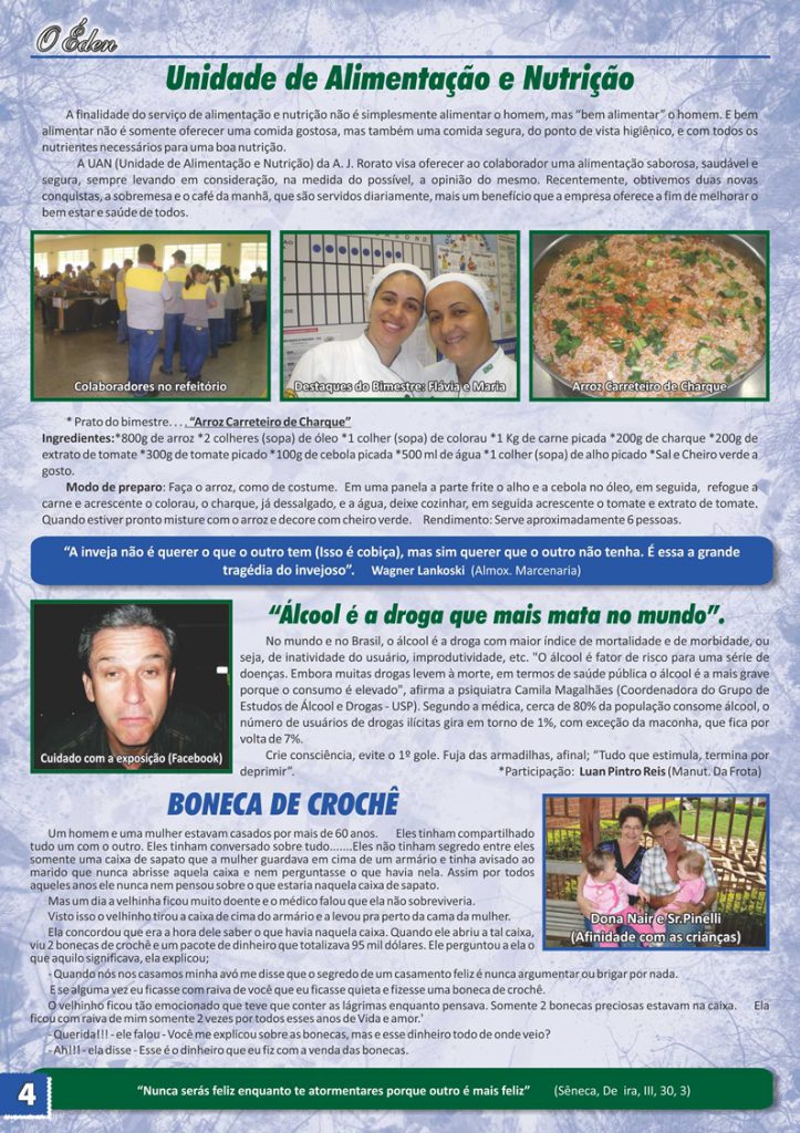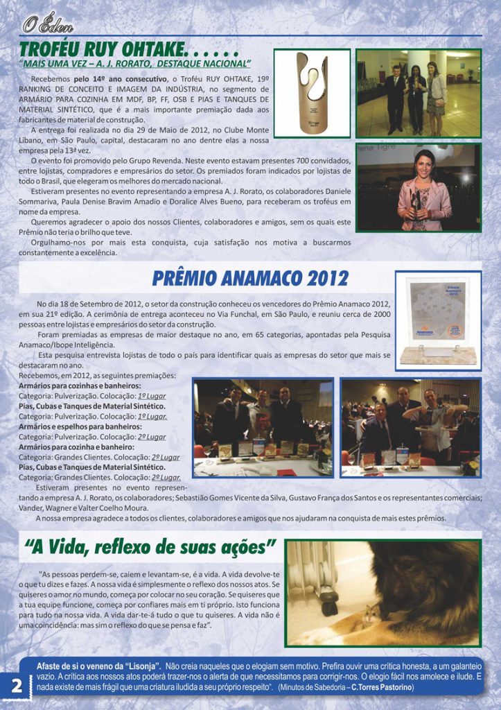 Para saber mais sobre a A. J. Rorato, acesse as últimas edições de O Éden, o informativo que há mais de 30 anos conta as novidades da empresa aos nossos colaboradores, parceiros e clientes.