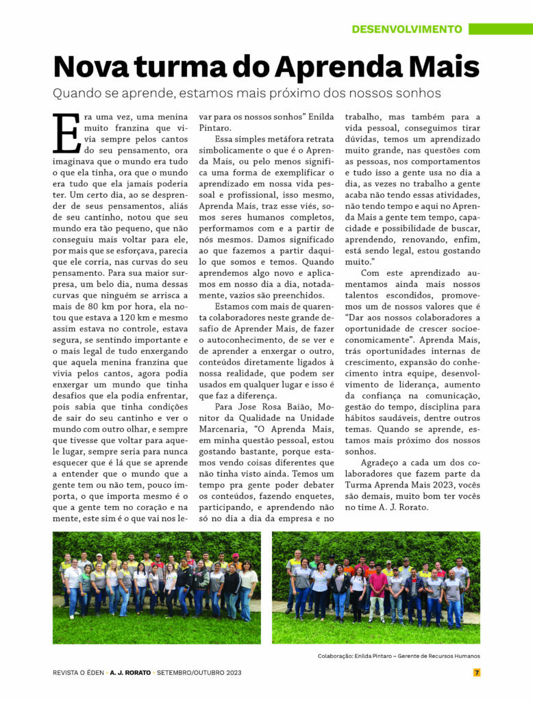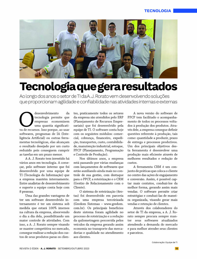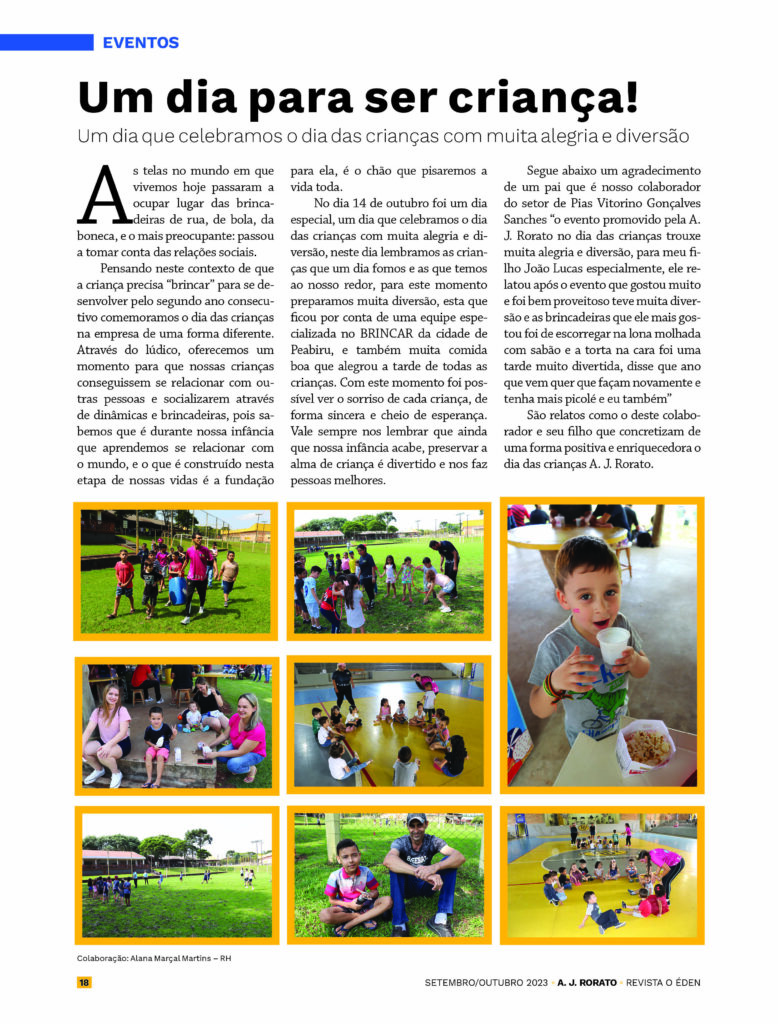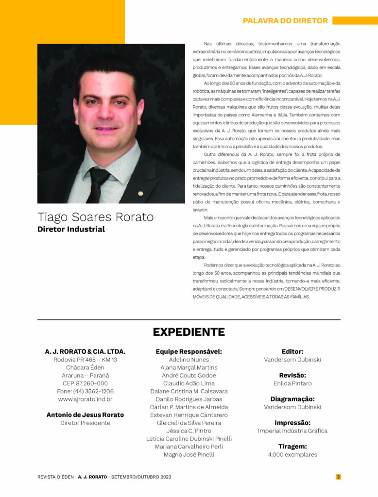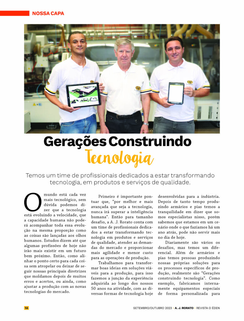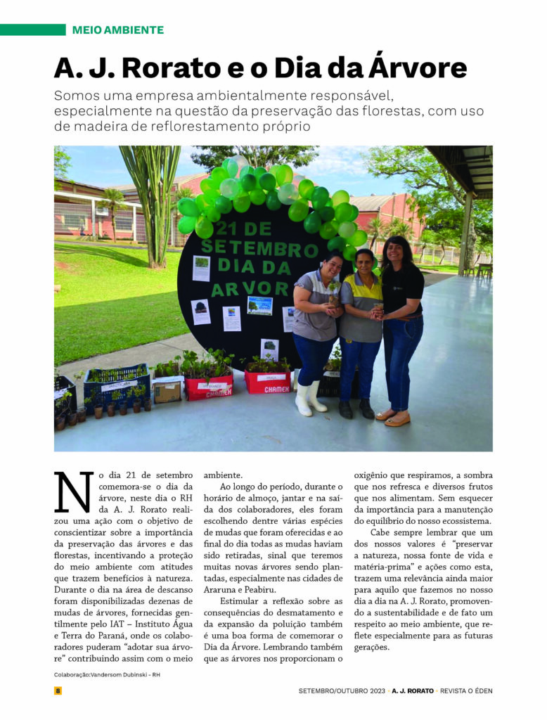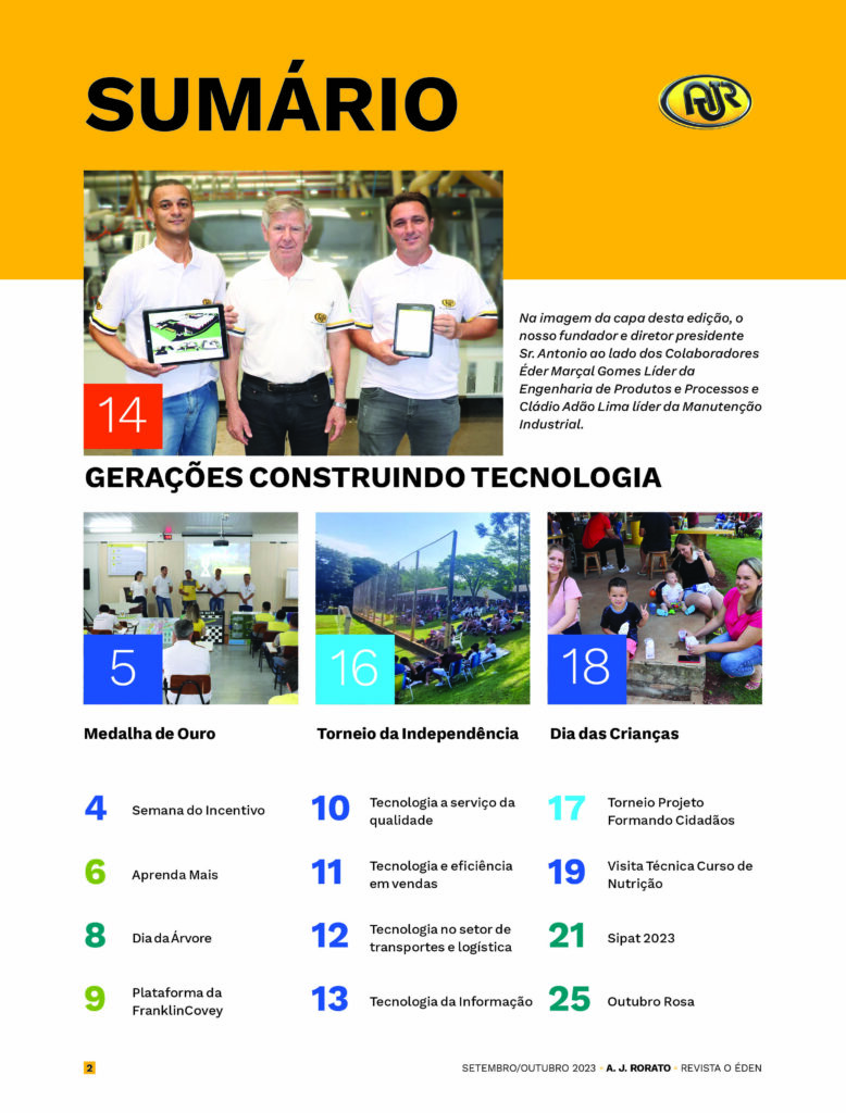 Para saber mais sobre a A. J. Rorato, acesse as últimas edições de O Éden, o informativo que há mais de 30 anos conta as novidades da empresa aos nossos colaboradores, parceiros e clientes.