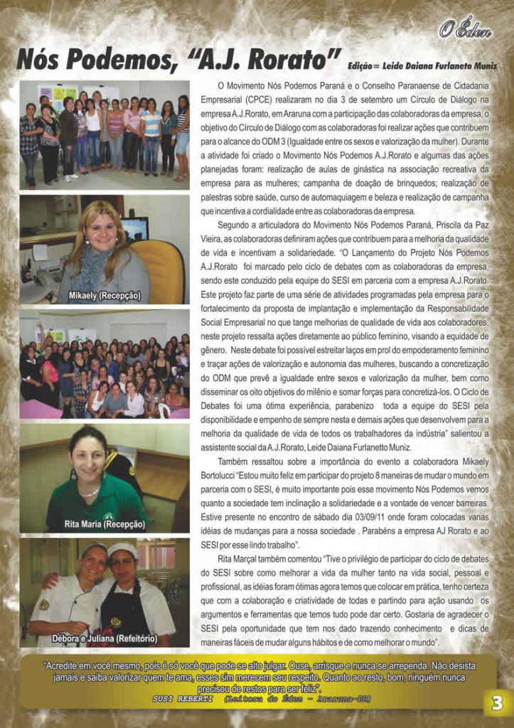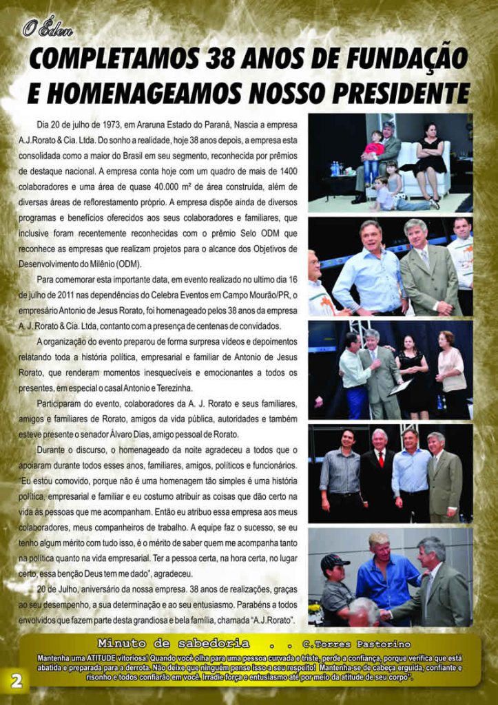 Para saber mais sobre a A. J. Rorato, acesse as últimas edições de O Éden, o informativo que há mais de 30 anos conta as novidades da empresa aos nossos colaboradores, parceiros e clientes.