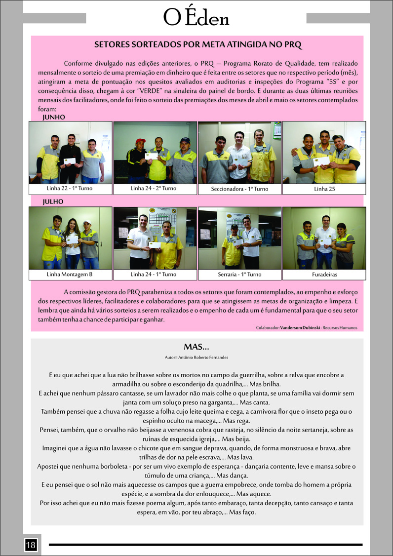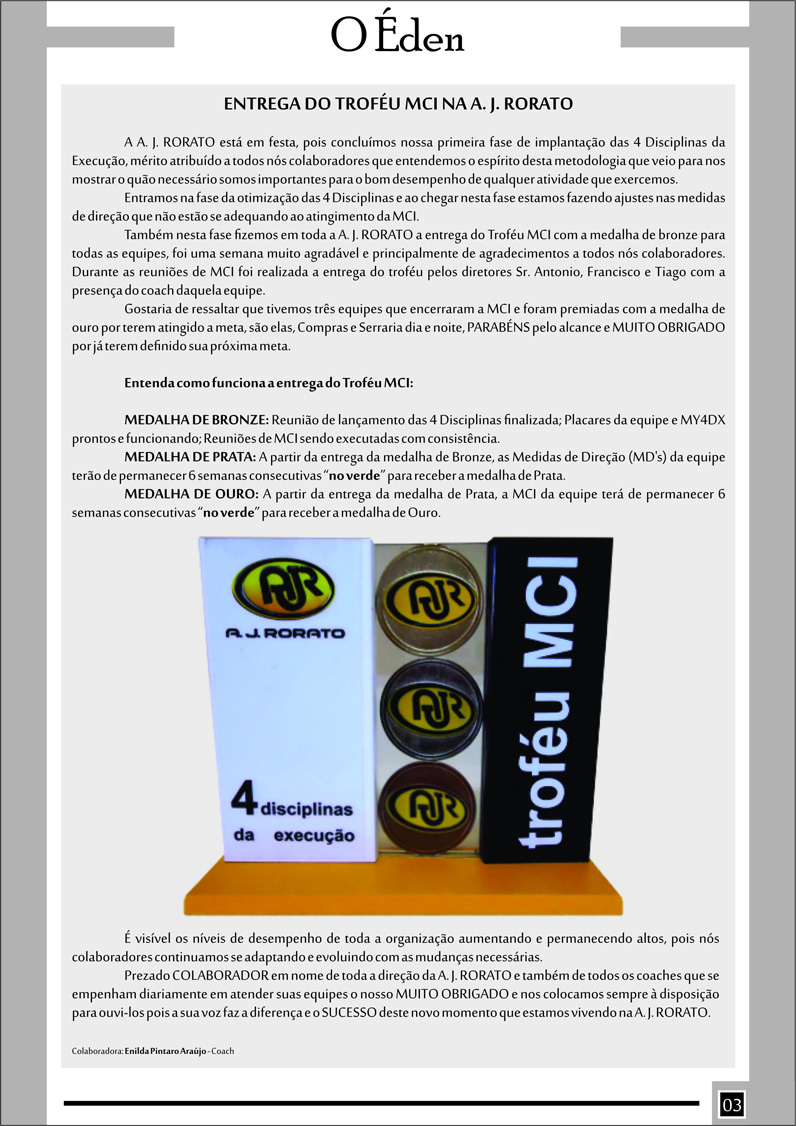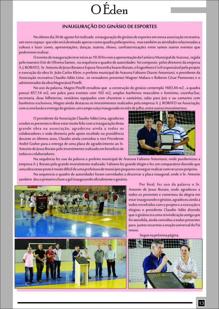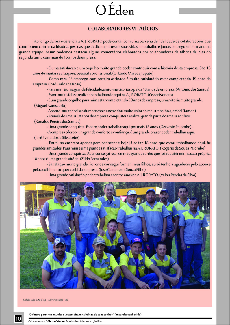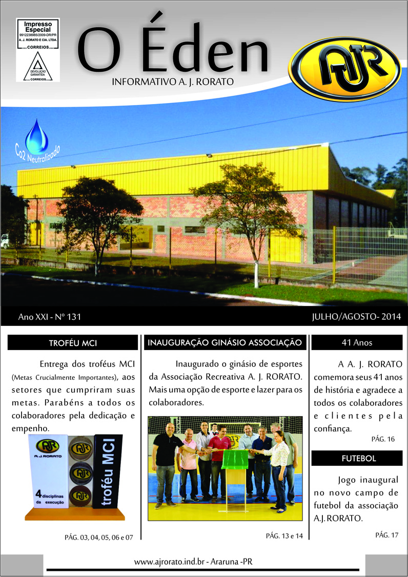 Para saber mais sobre a A. J. Rorato, acesse as últimas edições de O Éden, o informativo que há mais de 30 anos conta as novidades da empresa aos nossos colaboradores, parceiros e clientes.
