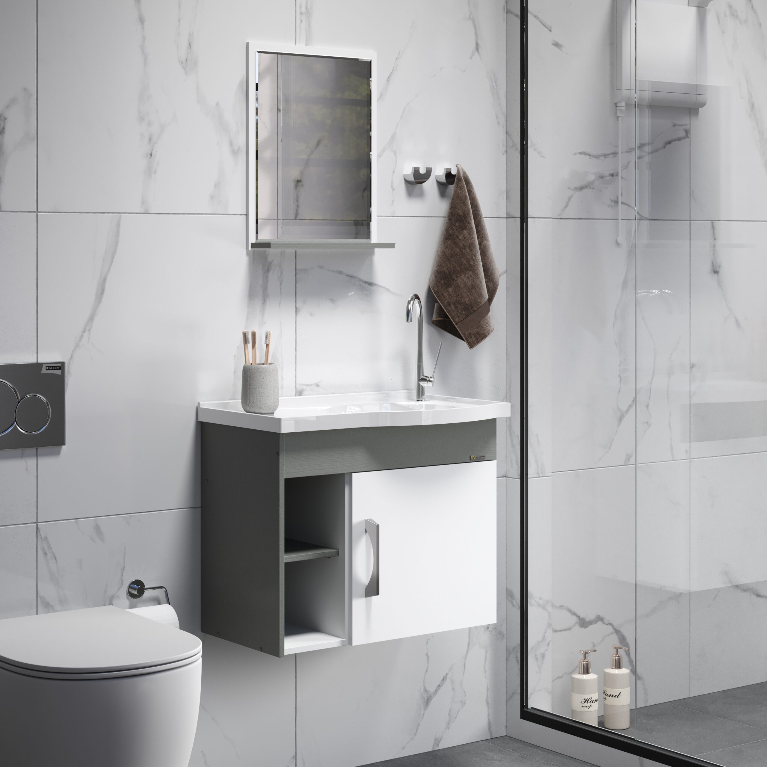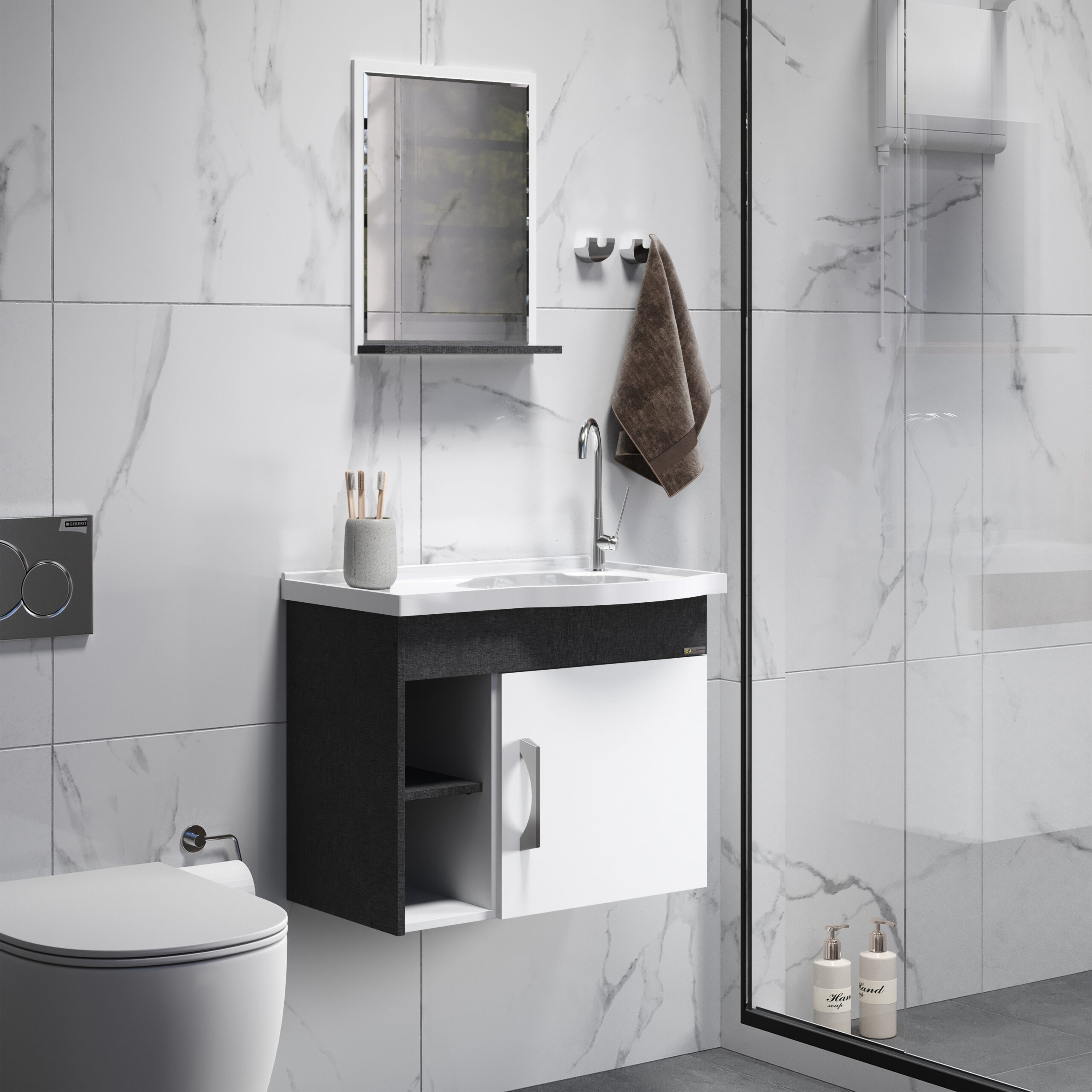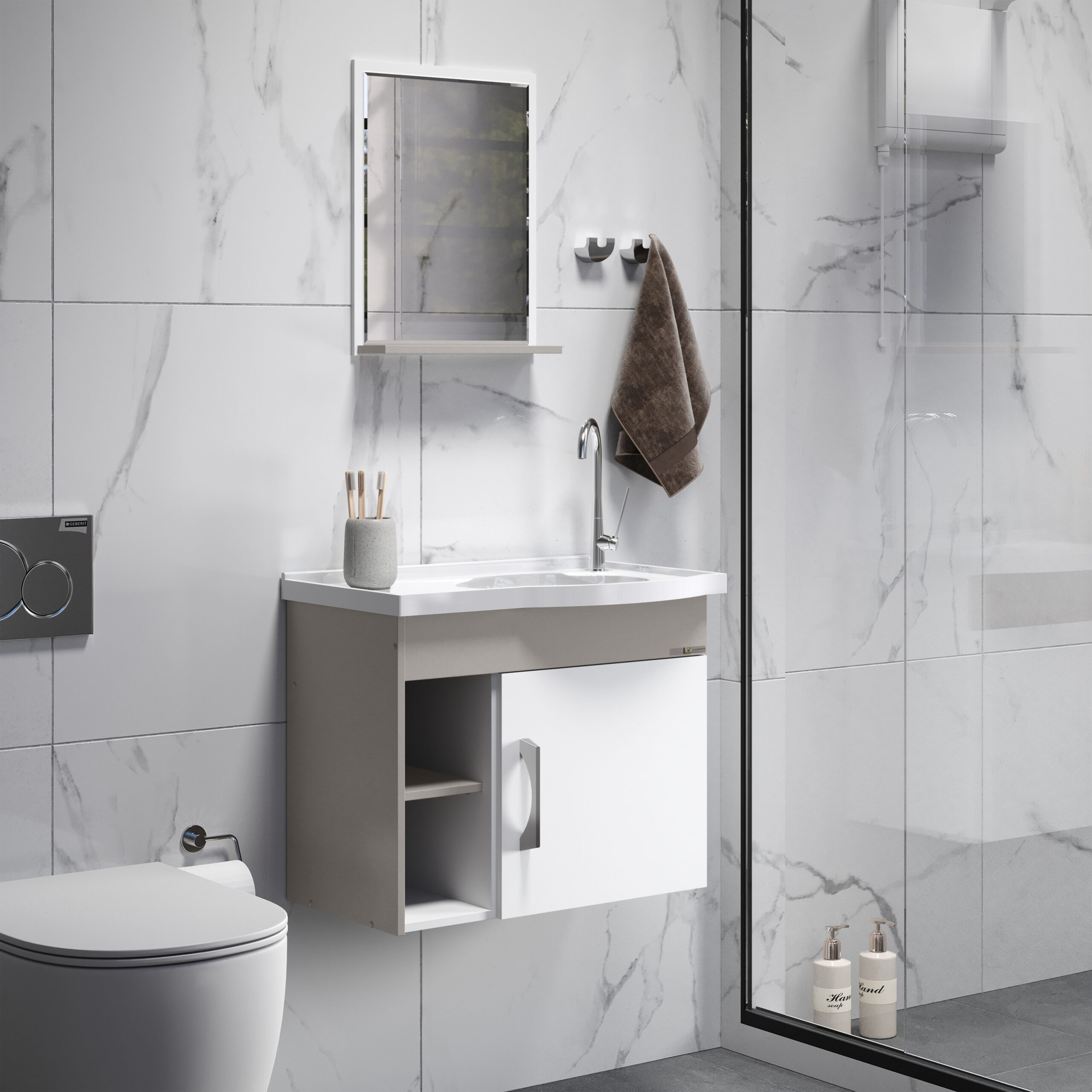 Os armários da Linha Turim são compactos e práticos, suas dimensões diferenciadas o torna ideal para ambientes com pouco espaço, e sua composição integrada entre o texturizado e o amadeirado combina em qualquer decoração. Possui puxadores retos no padrão prata fosco e pia própria em mármore sintético, tornando o conjunto ainda mais bonito.